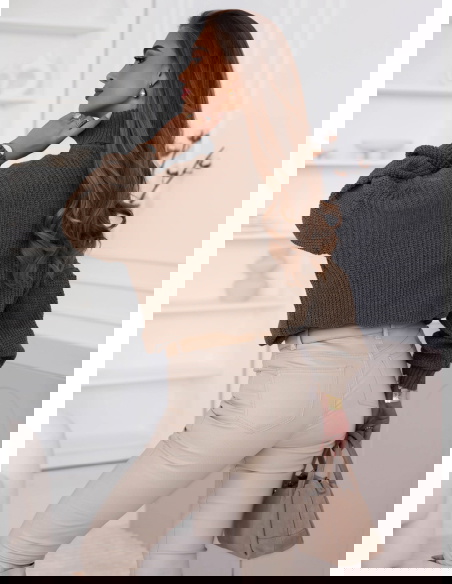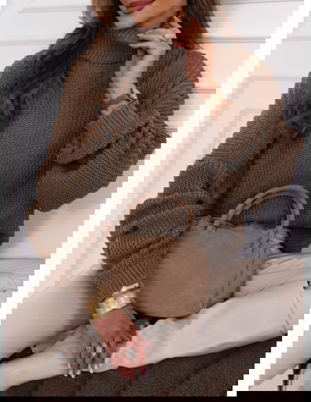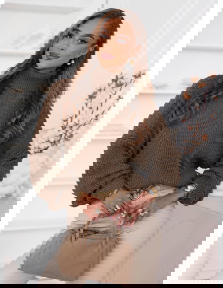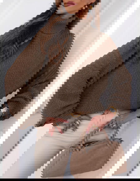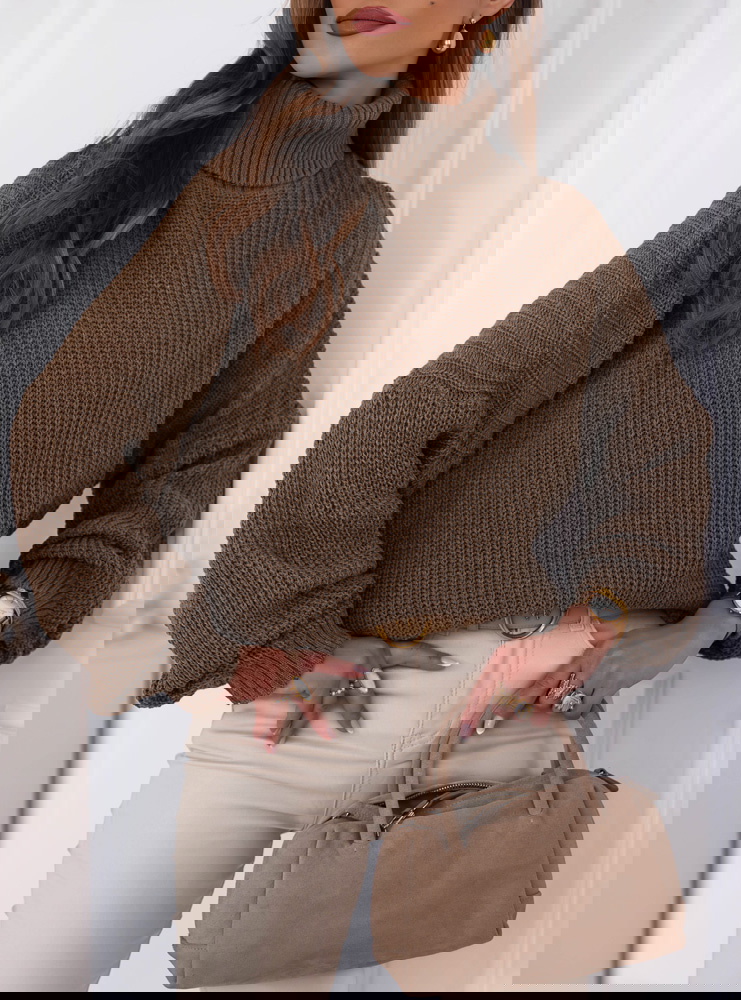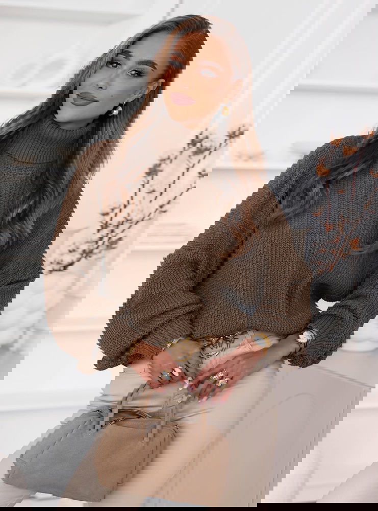 Czekoladowy sweter z golfem Cathenna