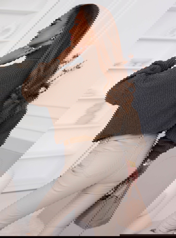Czekoladowy sweter z golfem Cathenna to doskonały wybór dla kobiet, które cenią elegancję w codziennym wydaniu. Jego głęboki, ciepły kolor przyciąga uwagę i idealnie wpisuje się w jesienno-zimową aurę. To model, który łączy wygodę z ponadczasowym stylem, otulając przyjemnie w chłodniejsze dni. Luźny fason oraz miękki, grubszy splot sprawiają, że prezentuje się niezwykle stylowo, a jednocześnie daje uczucie komfortu. Wysoki golf dodaje mu klasy, tworząc idealne tło dla biżuterii lub minimalistycznych dodatków. Ten sweter to esencja casualowej elegancji – naturalny, kobiecy i wyjątkowo uniwersalny.