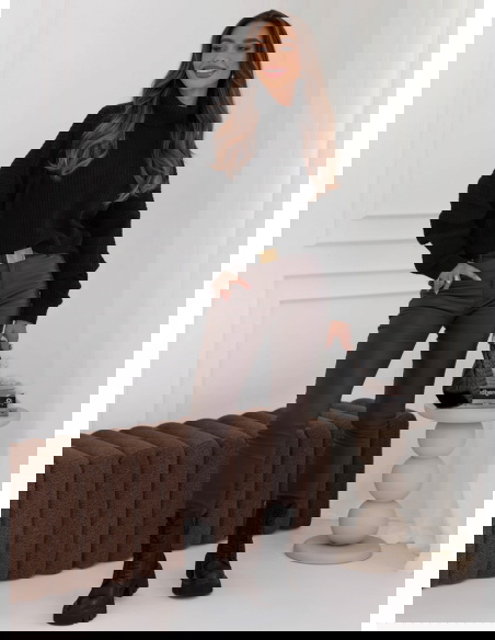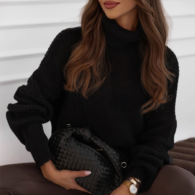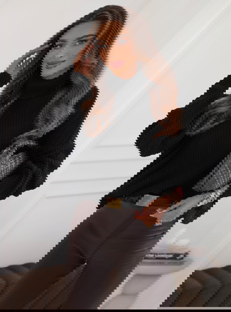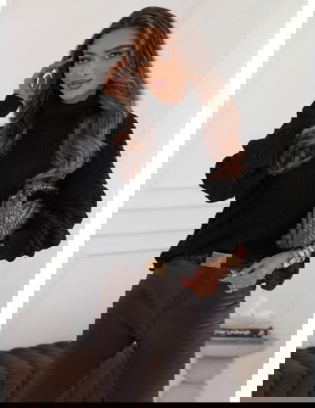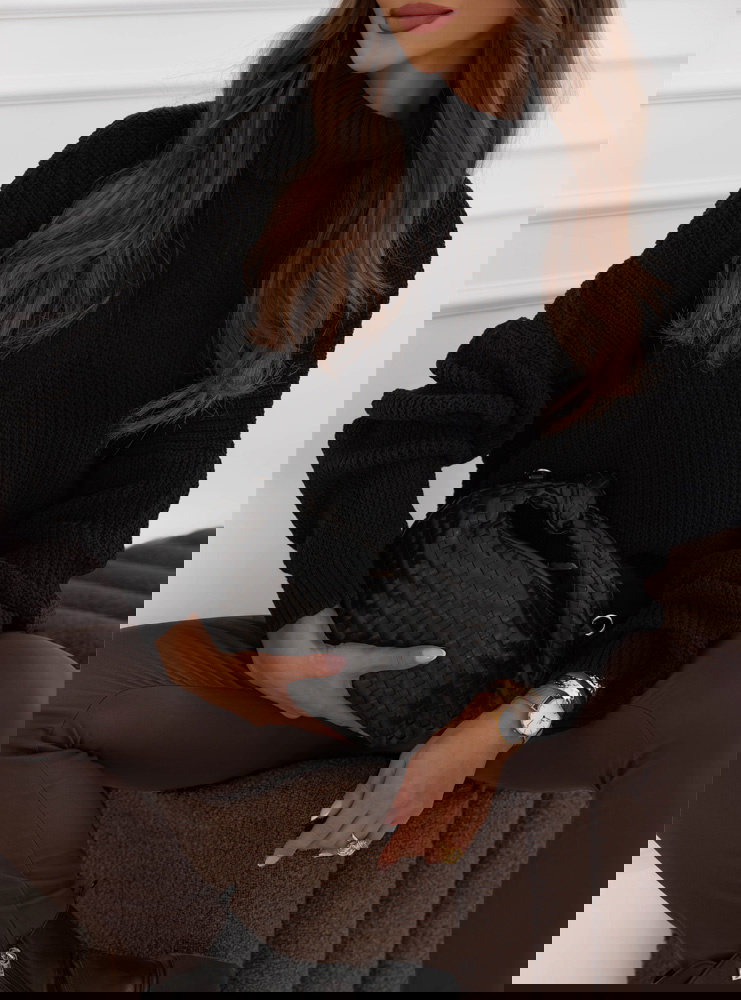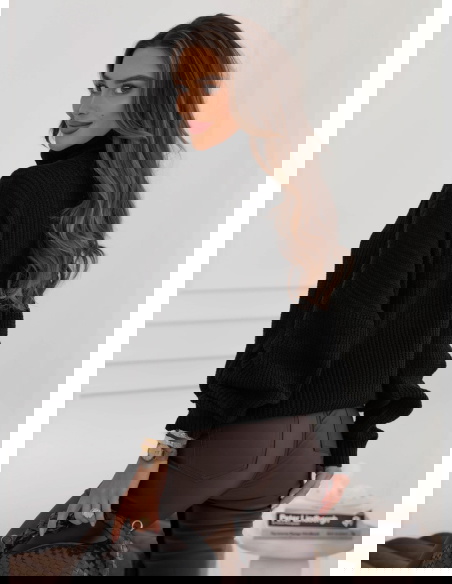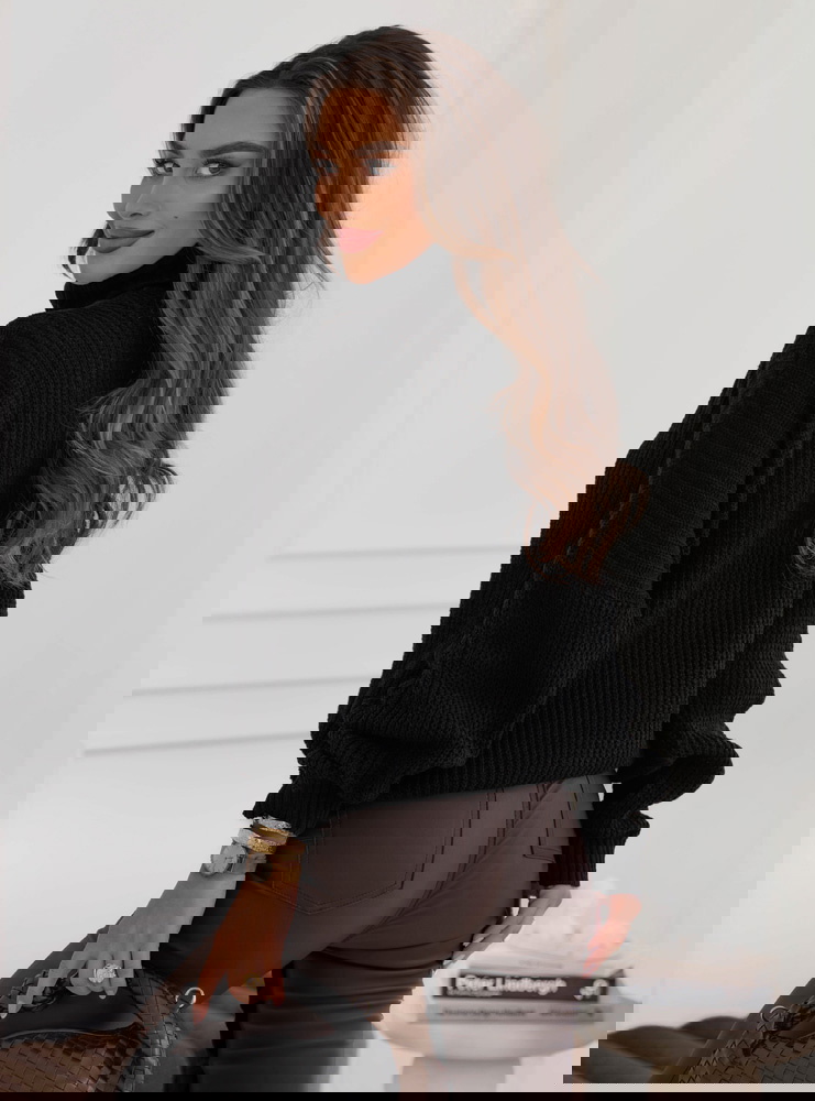 Czarny sweter z golfem Cathenna to klasyk, który nigdy nie wychodzi z mody. Jego elegancki, a zarazem prosty charakter sprawia, że doskonale odnajduje się w każdej garderobie. To model, który łączy w sobie szyk i wygodę, pozwalając tworzyć stylizacje zarówno codzienne, jak i bardziej wyrafinowane. Czerń nadaje mu uniwersalności, dzięki czemu pasuje do wszystkiego – od klasycznych jeansów po skórzane spodnie. Wysoki golf subtelnie podkreśla szyję, dodając całości elegancji, a lekko luźny fason zapewnia swobodę ruchów. To idealny wybór dla kobiet, które cenią minimalistyczne formy, ale nie rezygnują z modowego akcentu. Jesienią i zimą stanie się Twoim ulubionym elementem stylizacji – prostym, ale pełnym klasy.