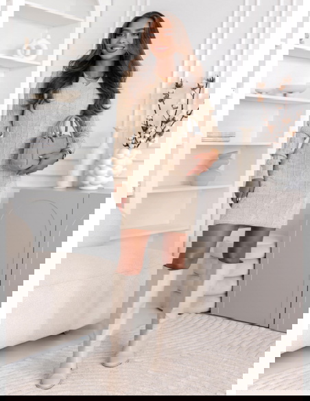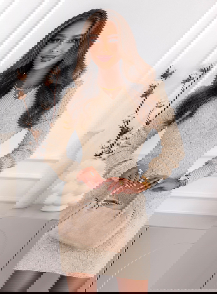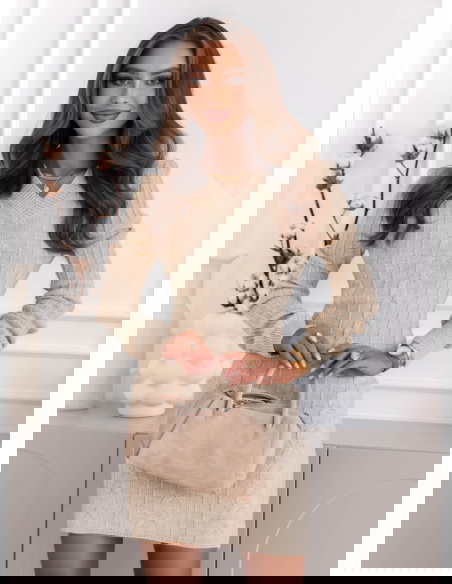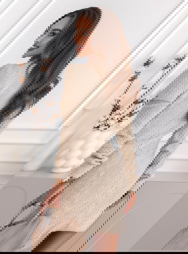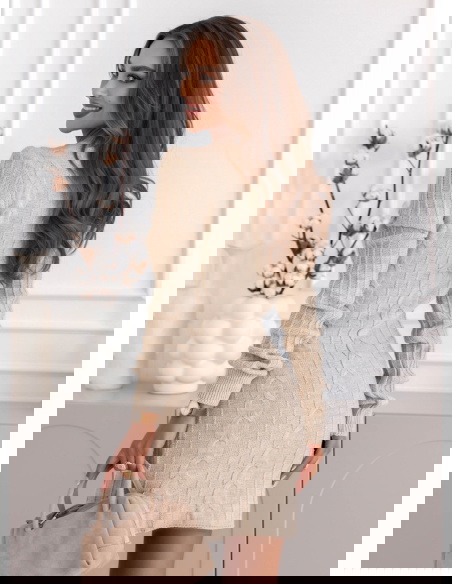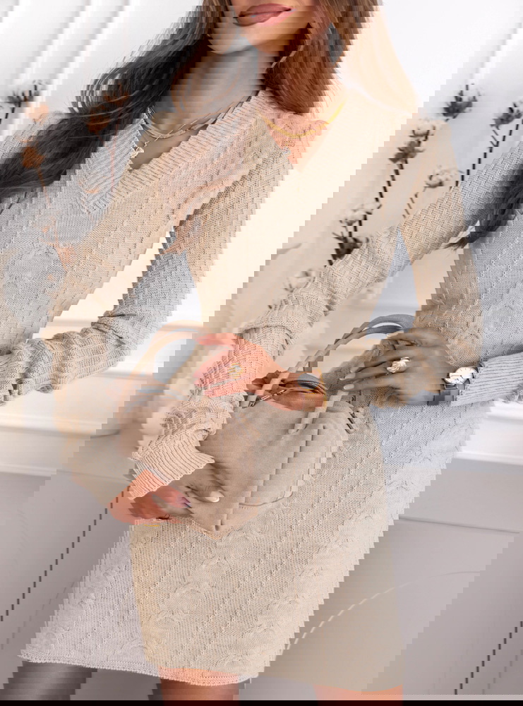 Beżowa sukienka swetrowa z warkoczowymi splotami Manonna