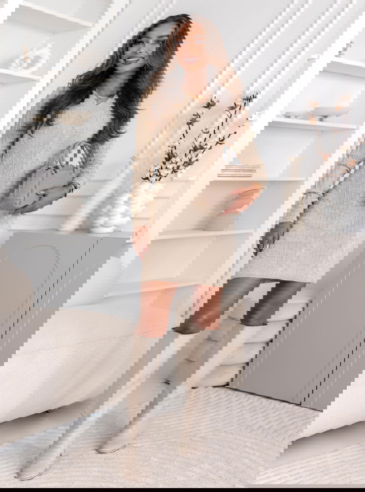 Beżowa sukienka swetrowa z warkoczowymi splotami Manonna to propozycja, która łączy w sobie kobiecy urok, klasykę i przytulny styl. Jej ciepły, neutralny odcień beżu dodaje elegancji i sprawia, że idealnie wpisuje się w jesienno-zimowe trendy. Dopasowany fason podkreśla sylwetkę, a charakterystyczne sploty o strukturze warkoczy nadają całości wyjątkowego uroku. Dekolt w serek subtelnie eksponuje szyję, a długie rękawy dopełniają harmonijny wygląd. To sukienka, która doskonale łączy wygodę z kobiecym wdziękiem, dzięki czemu świetnie sprawdzi się zarówno na co dzień, jak i w bardziej eleganckich zestawieniach.