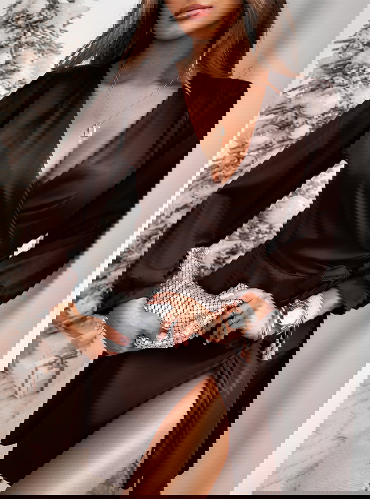 Czekoladowa satynowa sukienka przekładana z dekoltem Jannella to połączenie elegancji, komfortu i stylu. Jej kopertowy krój, lekki połysk i subtelne detale czynią ją idealną propozycją na wiele okazji. Niezależnie od tego, czy wybierzesz ją na święta, spotkanie w gronie bliskich, czy wieczorne wyjście, zawsze zapewni Ci wyjątkowy, olśniewający wygląd.