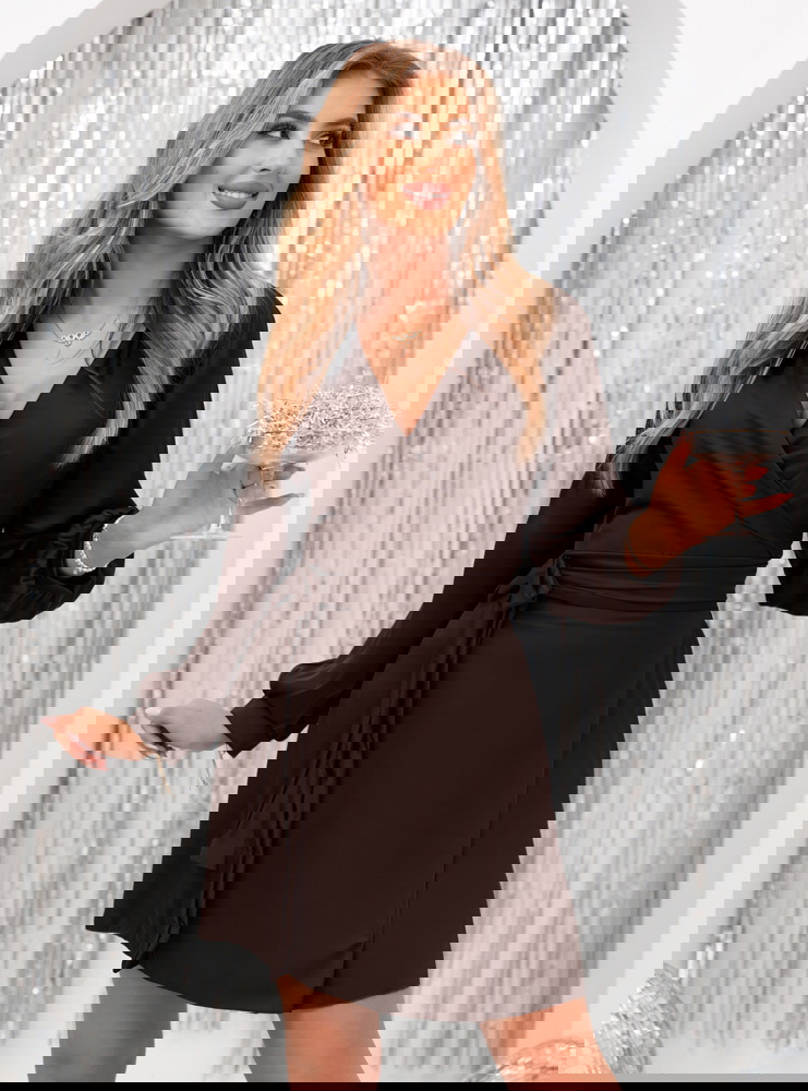 Czekoladowa satynowa sukienka przekładana z dekoltem Ludisya to model, który zachwyca elegancją i ponadczasowym wdziękiem. Jej subtelny połysk przyciąga spojrzenia i dodaje stylizacji wyjątkowego charakteru. Kopertowy krój delikatnie podkreśla kobiece kształty, a wiązanie w talii pięknie akcentuje sylwetkę. Długie rękawy zakończone mankietami dodają całości lekkości i klasy. To sukienka, która łączy w sobie prostotę z nutą zmysłowości, tworząc idealną propozycję na wyjątkowe okazje.