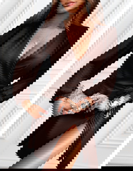 Czekoladowa satynowa sukienka przekładana z dekoltem Byrdene to must-have w garderobie każdej kobiety ceniącej elegancję. Jej zmysłowy krój, miękki połysk i idealne dopasowanie sprawiają, że prezentuje się olśniewająco w każdej sytuacji. To model, który podkreśla kobiecość, dodaje pewności siebie i gwarantuje stylowy wygląd na każdą wyjątkową okazję.