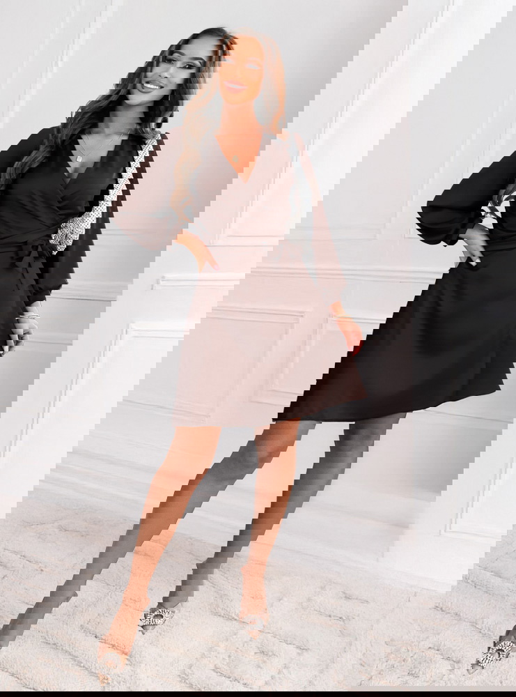 Czekoladowa satynowa sukienka przekładana z dekoltem Byrdene to kwintesencja elegancji i kobiecego wdzięku. Jej połyskujący materiał subtelnie otula sylwetkę, nadając jej lekkości i szyku. Kopertowy krój z głębokim dekoltem pięknie podkreśla biust, a wiązanie w talii modeluje figurę, tworząc harmonijne proporcje. Długie rękawy zakończone delikatnym mankietem dodają całości klasycznego charakteru. To idealna propozycja dla kobiet, które lubią łączyć nowoczesność z ponadczasową elegancją.