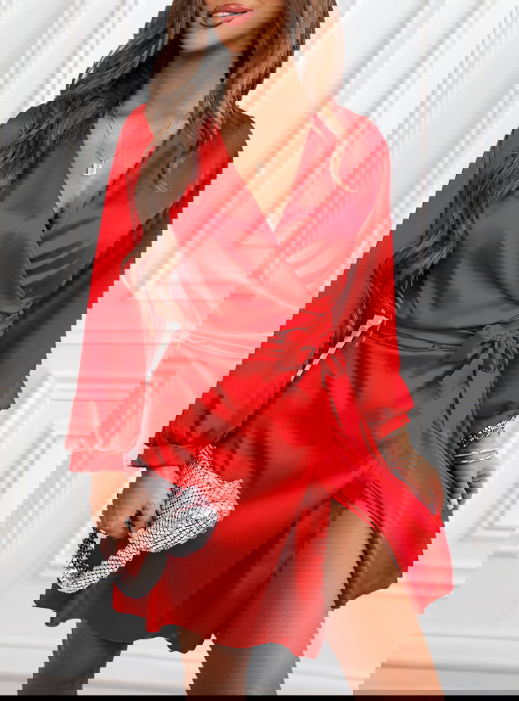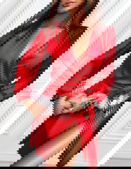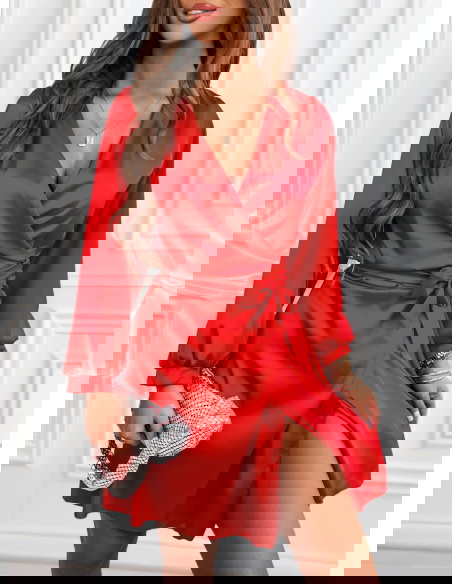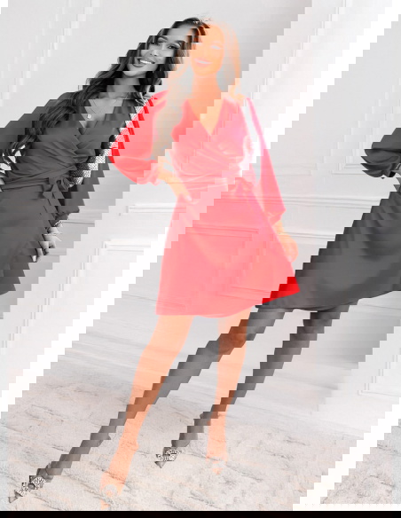 Malinowa satynowa sukienka przekładana z dekoltem Byrdene to model, który emanuje kobiecością i pewnością siebie. Jej intensywny, malinowy kolor przyciąga wzrok i dodaje energii każdej stylizacji. Satynowy materiał delikatnie połyskuje, tworząc efekt luksusu i elegancji. Kopertowy krój pięknie podkreśla sylwetkę, a wiązanie w talii pozwala idealnie dopasować sukienkę do figury. Długie rękawy zakończone subtelnym mankietem dodają lekkości i klasy. To propozycja, która sprawdzi się zawsze, gdy chcesz wyglądać zjawiskowo i olśniewająco.