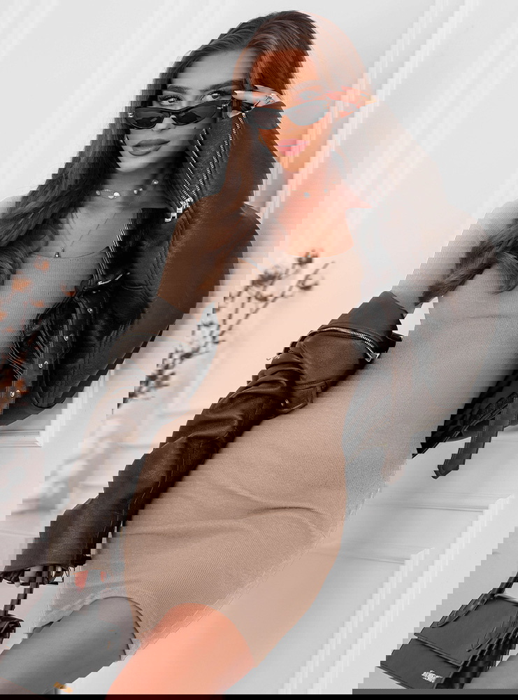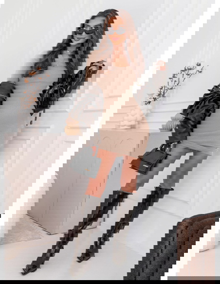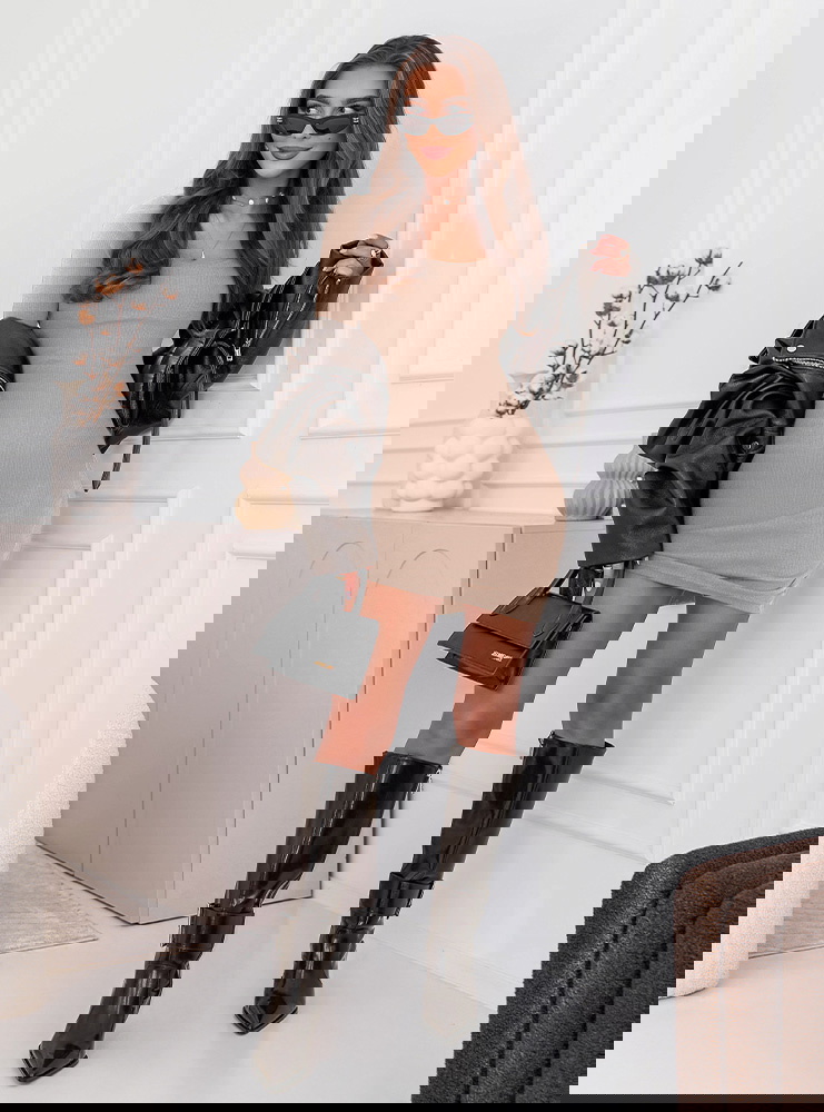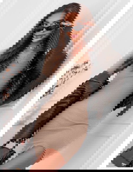 Beżowa prążkowana dopasowana sukienka mini Everleigh to kwintesencja subtelnej elegancji i kobiecego wdzięku. Jej delikatny, neutralny kolor idealnie podkreśla naturalne piękno i doskonale wpisuje się w najmodniejsze trendy sezonu. Dopasowany krój pięknie modeluje sylwetkę, podkreślając talię i kobiece kształty. To klasyczna propozycja, która łączy minimalizm z wyrafinowanym stylem, dając efekt elegancji w nowoczesnym wydaniu.