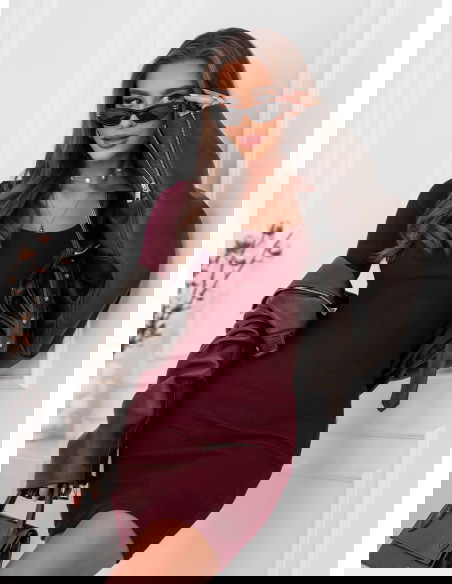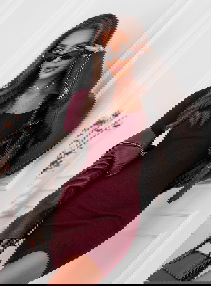 Bordowa prążkowana dopasowana sukienka mini Everleigh to połączenie klasy, stylu i wygody. Jej dopasowany fason podkreśla kobiecość, a ponadczasowy kolor dodaje szyku. To model, który pozwoli Ci wyglądać olśniewająco bez względu na okazję – wystarczy dobrać odpowiednie dodatki, by stworzyć look idealny na każdą porę roku.