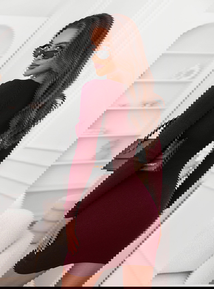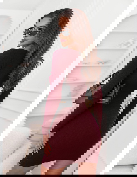 Bordowa prążkowana dopasowana sukienka mini Everleigh to esencja kobiecości w eleganckim wydaniu. Jej głęboki, nasycony kolor przyciąga wzrok i podkreśla wyjątkowy charakter stylizacji. Dopasowany krój idealnie eksponuje figurę, a elastyczny materiał zapewnia wygodę i pełną swobodę ruchów. Długie rękawy i klasyczny dekolt nadają całości subtelnego uroku, czyniąc z tej sukienki idealny wybór na wiele okazji. To model, który doskonale łączy w sobie prostotę i elegancję.