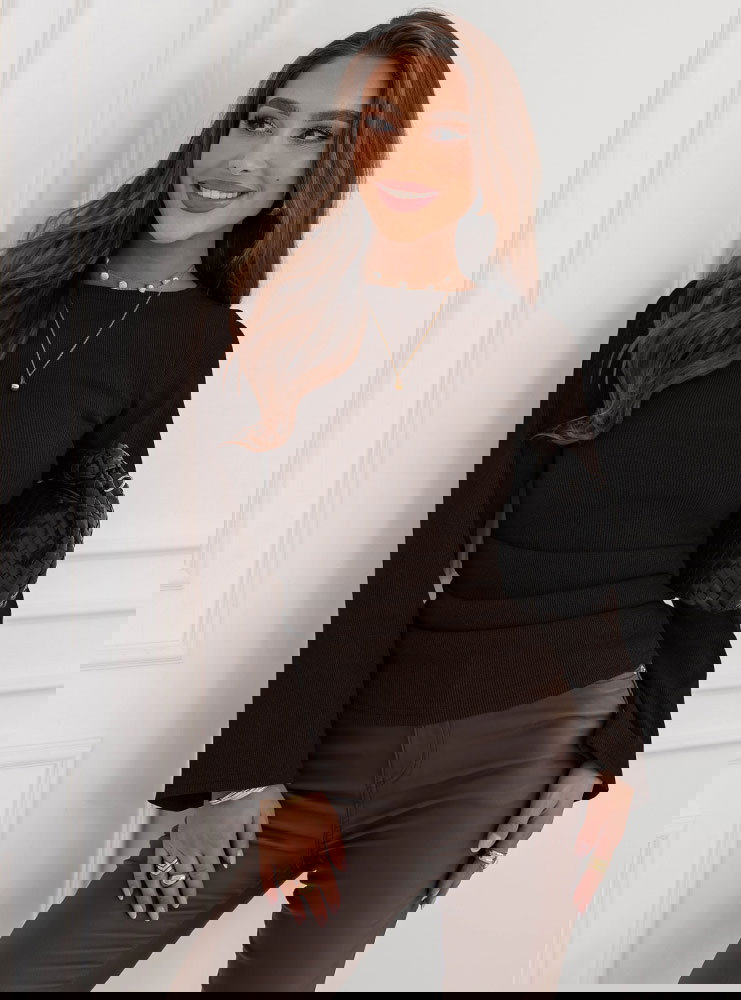 Czekoladowa bluzka w prążek z marszczeniami Zennia to wyjątkowe połączenie elegancji i subtelnego wdzięku. Jej głęboki, ciepły odcień idealnie wpisuje się w jesienno-zimowe trendy, podkreślając styl i klasę każdej stylizacji. Dopasowany fason pięknie modeluje sylwetkę, a charakterystyczne marszczenia w talii dodają jej nowoczesnego i kobiecego charakteru. To model, który łączy w sobie ponadczasową prostotę z nutą modowej finezji.