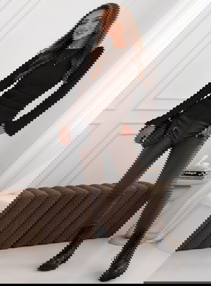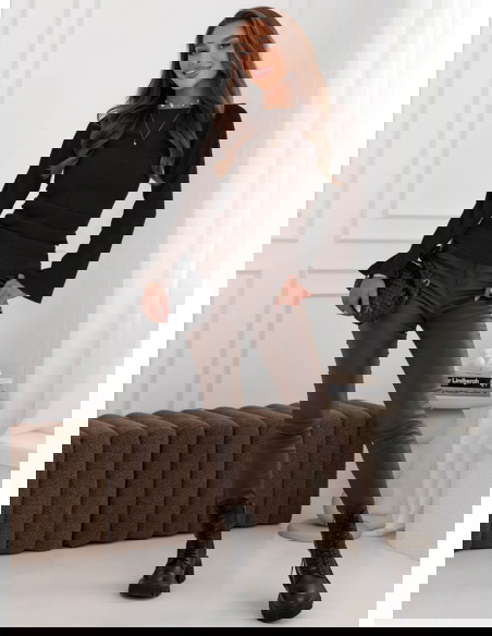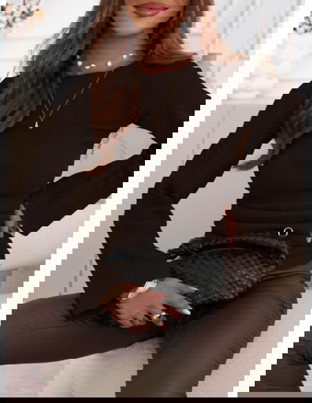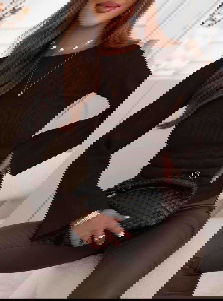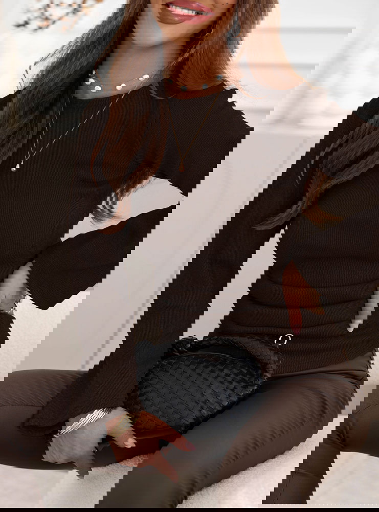 Czekoladowa bluzka w prążek z marszczeniami Zennia to modna, kobieca i ponadczasowa propozycja, która stanie się jednym z ulubionych elementów garderoby. Jej subtelny kolor, dopasowany krój i delikatne detale sprawiają, że idealnie łączy wygodę z elegancją. To doskonały wybór na chłodniejsze dni, kiedy chcesz wyglądać stylowo i czuć się komfortowo.