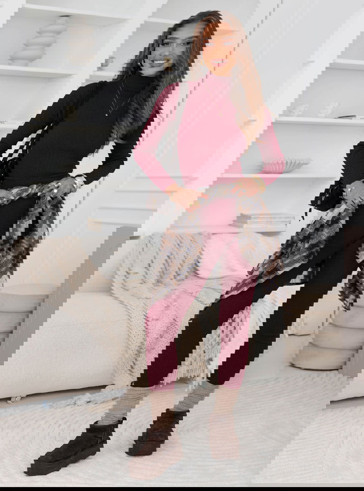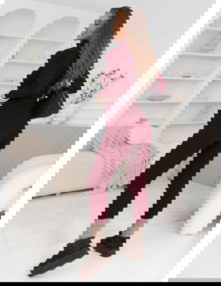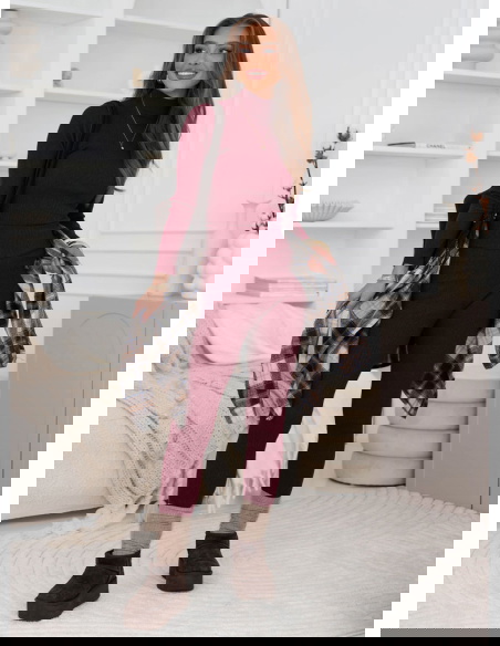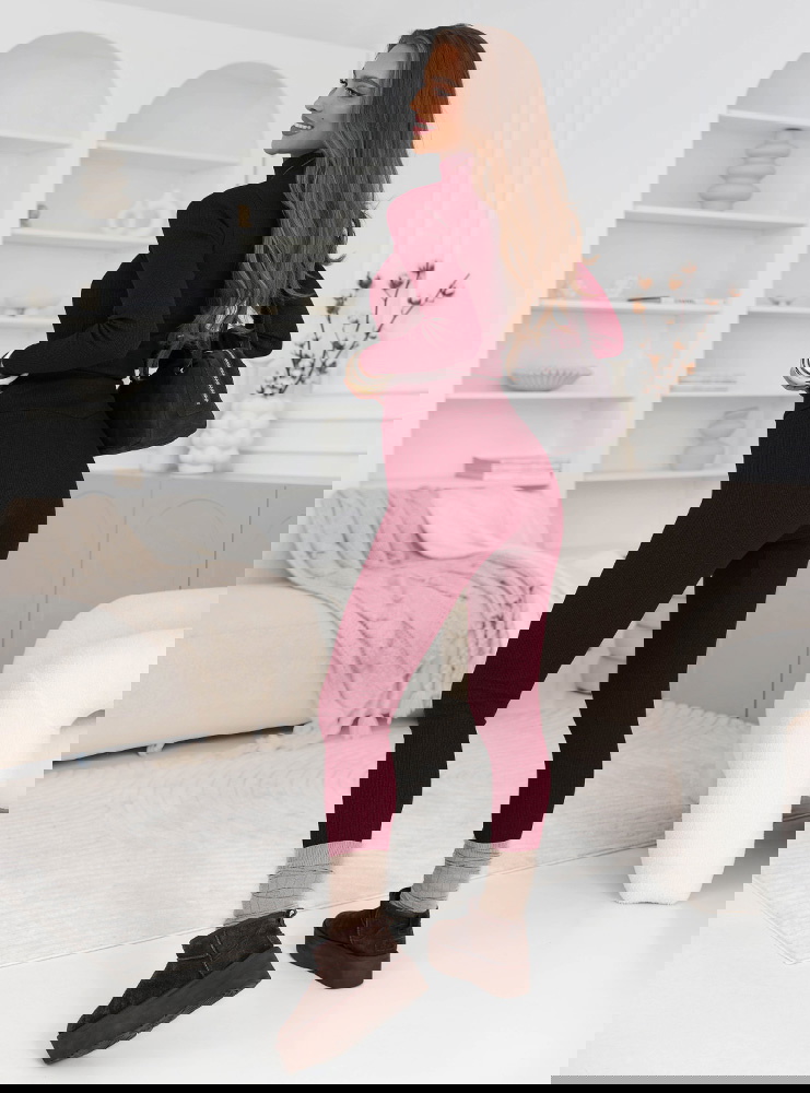 Bordowy prążkowany komplet bluzka z golfem i leginsy Milly to stylowa propozycja, która łączy kobiecość z wygodą. Głęboki, elegancki odcień bordo sprawia, że całość prezentuje się wyjątkowo efektownie. Dopasowany krój podkreśla sylwetkę, zachowując przy tym pełen komfort noszenia. Wysoki golf dodaje szyku i chroni w chłodniejsze dni, nadając całości eleganckiego charakteru. Prążkowana struktura materiału subtelnie modeluje figurę i wysmukla ją optycznie. To zestaw, który świetnie sprawdzi się w codziennych stylizacjach, ale również w bardziej dopracowanych zestawieniach. Bordowy kolor pięknie komponuje się z neutralnymi dodatkami i podkreśla urodę. Komplet ten to połączenie prostoty, klasy i nowoczesnego designu. Doskonale sprawdzi się zarówno na co dzień, jak i podczas weekendowego relaksu. To wybór dla kobiet, które lubią wyglądać modnie, nie rezygnując z komfortu.