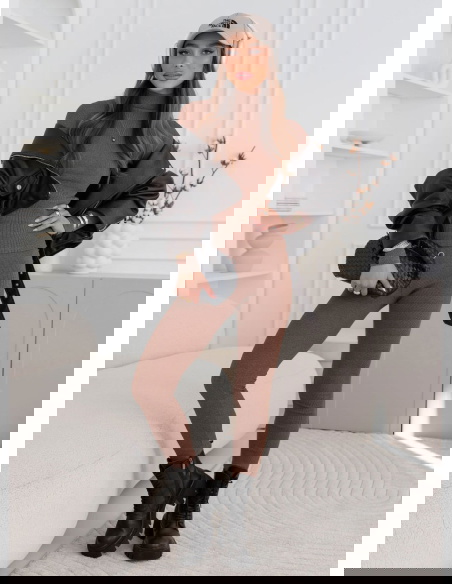 Prążkowany komplet bluzka z golfem i leginsy Milly - mocha mousse to połączenie kobiecego stylu i nowoczesnej prostoty. Dzięki dopasowanemu krojowi i subtelnej kolorystyce wygląda niezwykle elegancko. Prążkowany materiał dodaje mu modnego charakteru i zapewnia komfort noszenia. To zestaw, który sprawdzi się przez cały rok – w każdej odsłonie. Możesz go dowolnie stylizować, tworząc zestawy od casualowych po bardziej szykowne. Kolor mocha mousse wprowadza harmonię i ciepło do Twojej garderoby. To komplet, w którym poczujesz się modnie, kobieco i pewnie w każdej sytuacji.