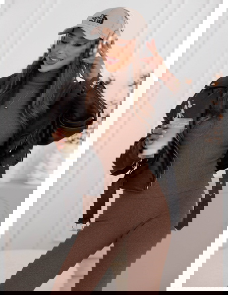 Prążkowany komplet bluzka z golfem i leginsy Milly - mocha mousse