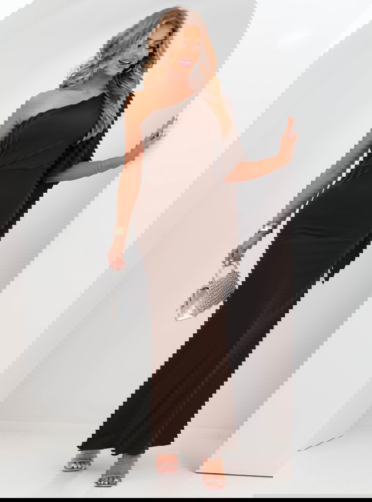 Czekoladowa sukienka na jedno ramię z rozcięciem Nayomi to esencja kobiecej elegancji i ponadczasowego stylu. Jej dopasowany krój doskonale podkreśla figurę, eksponując kobiece kształty w subtelny, gustowny sposób. Jednoramienny fason nadaje całości wyjątkowego charakteru i przyciąga spojrzenia swoją oryginalnością. Delikatne drapowanie i opadający materiał na ramieniu dodają jej lekkości i klasy. Długość maxi oraz efektowne rozcięcie na nodze wprowadzają zmysłowy akcent, zachowując jednocześnie elegancki ton stylizacji. Głęboki, czekoladowy kolor podkreśla urodę i doskonale wpisuje się w modowe trendy sezonu. Sukienka została uszyta z miękkiego, lekko elastycznego materiału, który pięknie układa się na ciele. To idealna propozycja dla kobiet, które cenią szyk i prostotę w luksusowym wydaniu. Model ten sprawdzi się zarówno na wieczorne wyjścia, jak i na bardziej formalne uroczystości. W tej sukience każda kobieta poczuje się elegancko, wyjątkowo i pewnie siebie.