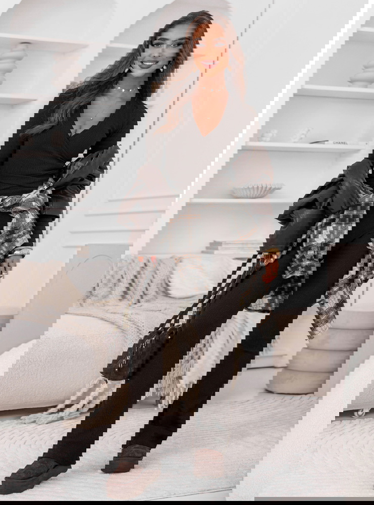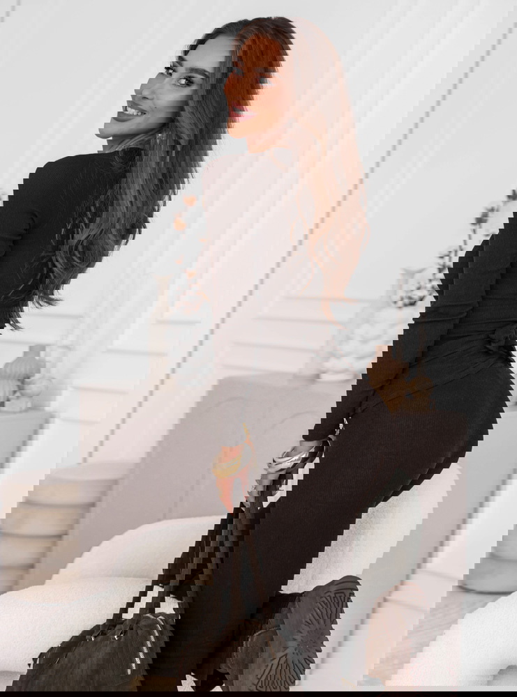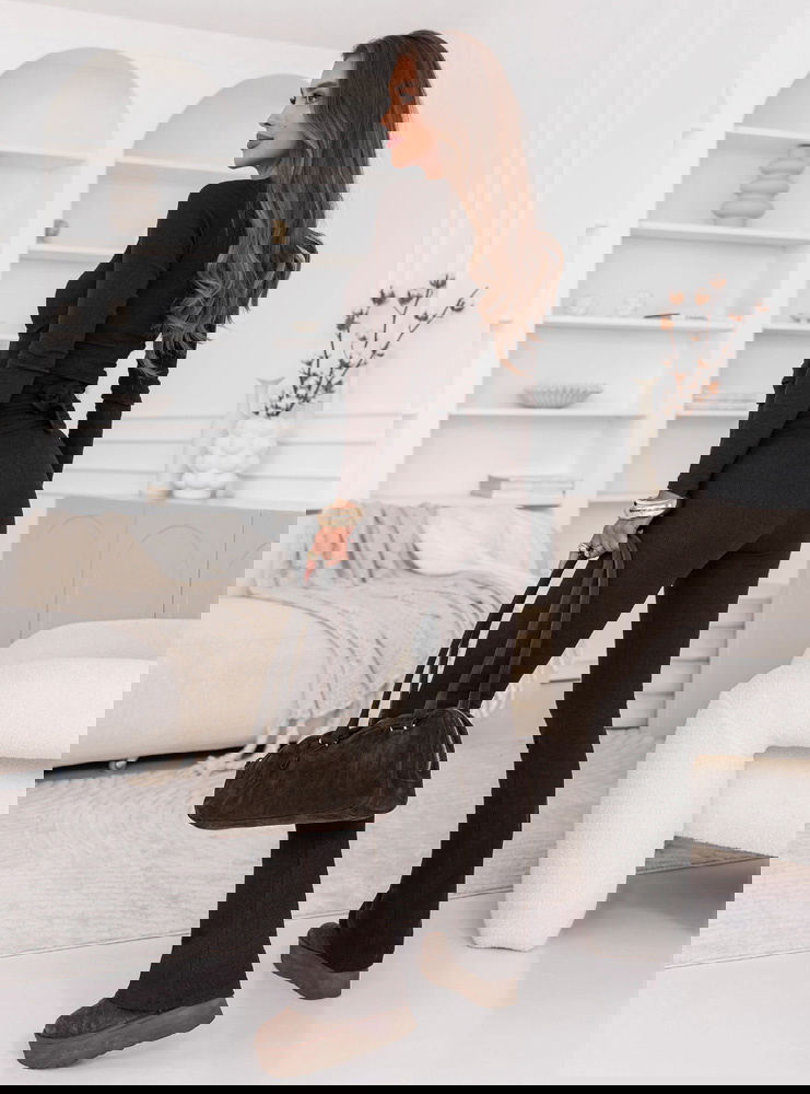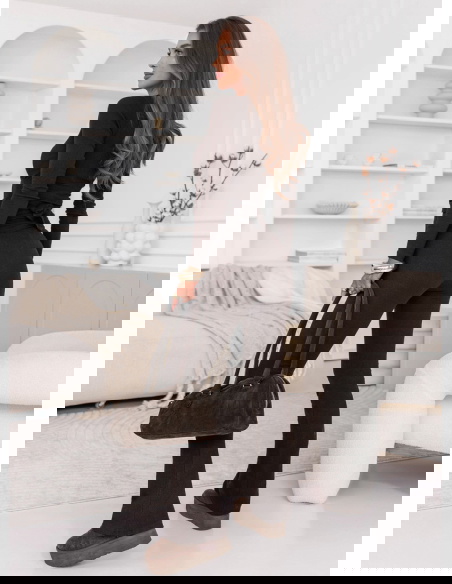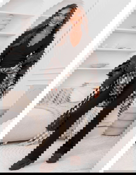 Czekoladowy prążkowany komplet bluzka z wiązaniem i spodnie Rosanda to idealne połączenie wygody i stylu w jesiennym wydaniu. Jego głęboki, ciepły odcień czekolady dodaje klasy i sprawia, że każda stylizacja nabiera elegancji. Dopasowana bluzka z wiązaniem w talii pięknie podkreśla kobiece kształty, jednocześnie zapewniając komfort noszenia. Prążkowany materiał wprowadza subtelną strukturę, która optycznie wysmukla sylwetkę. Spodnie z lekko rozszerzaną nogawką nadają stylizacji lekkości i wydłużają nogi. To komplet, który doskonale sprawdzi się zarówno na co dzień, jak i w bardziej stylowych zestawieniach. Czekoladowy kolor cudownie komponuje się z beżem, czernią i złotymi dodatkami, tworząc modne i harmonijne połączenia. Jego uniwersalny fason pozwala na dowolne stylizacje – od casualowych po bardziej kobiece. To zestaw, który łączy modny wygląd z funkcjonalnością. W nim zawsze poczujesz się stylowo, swobodnie i pewnie siebie.