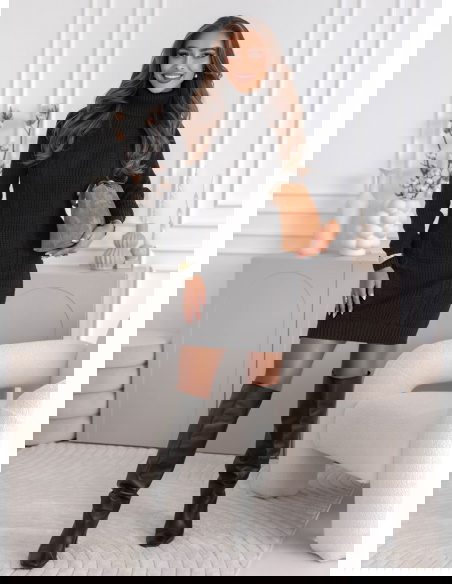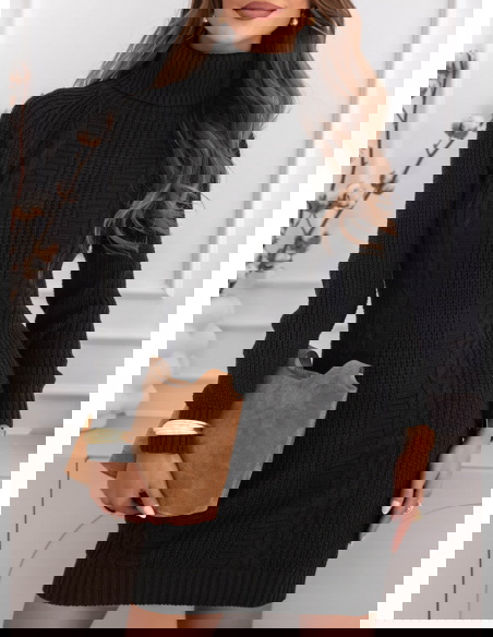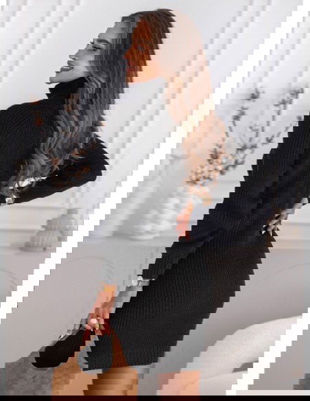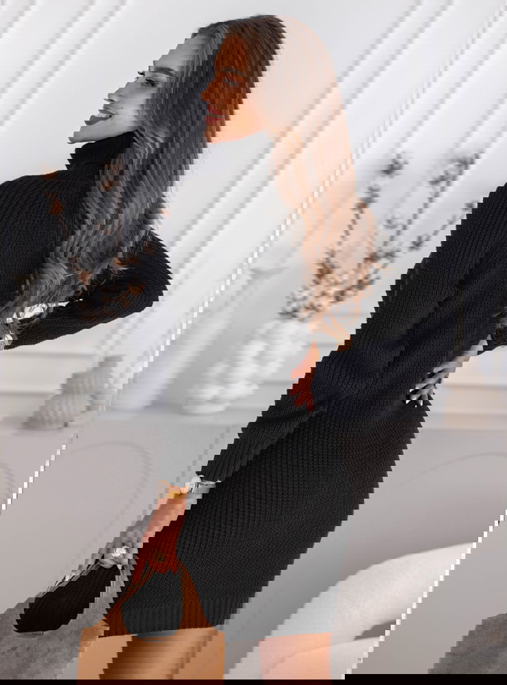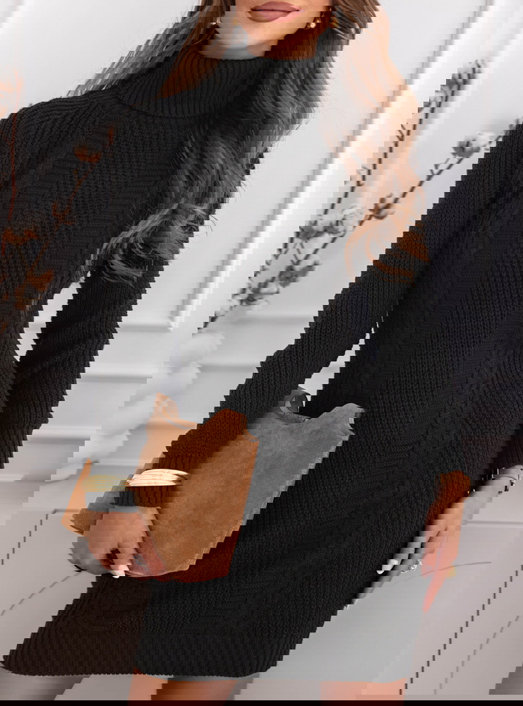 Czarna sukienka swetrowa z warkoczowymi splotami Bernadina