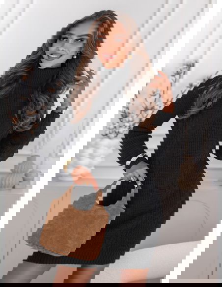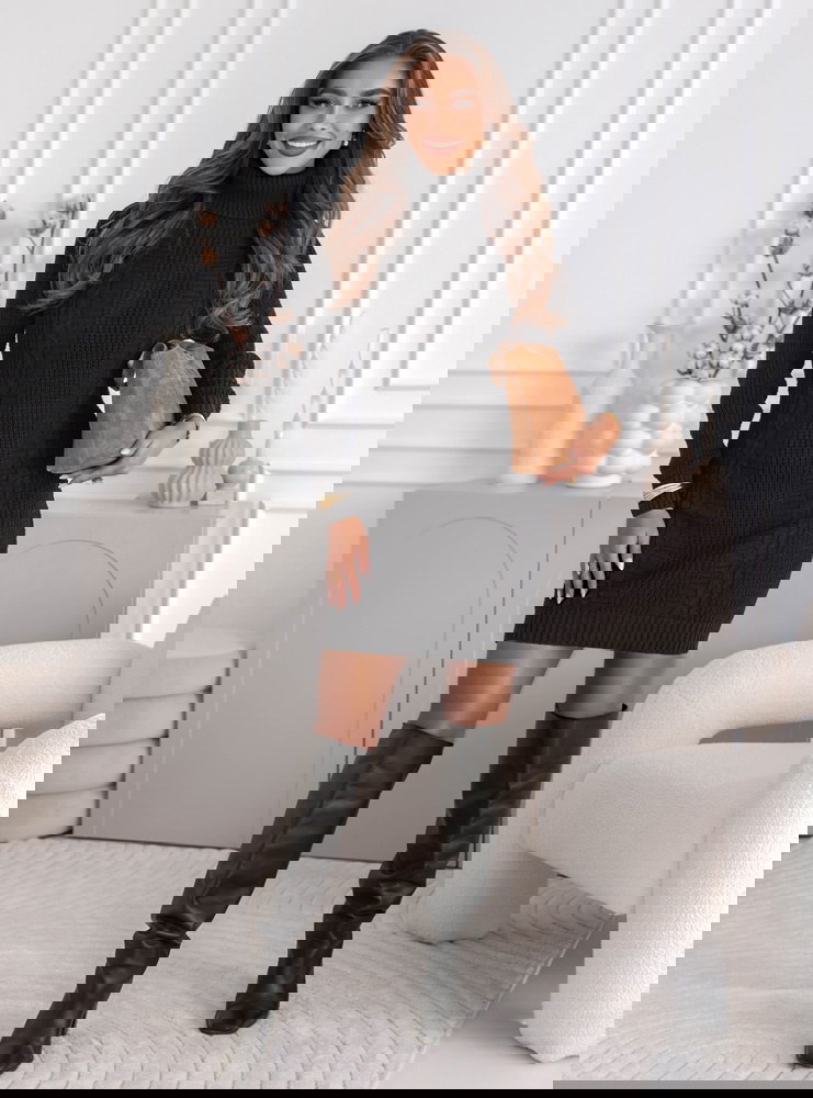 Czarna sukienka swetrowa z warkoczowymi splotami Bernadina to must-have sezonu jesień–zima. Klasyczna, elegancka i niezwykle kobieca – sprawdzi się zawsze, gdy chcesz wyglądać modnie i czuć się komfortowo. Jej miękki materiał i dopasowany krój pięknie układają się na sylwetce. Wysoki golf dodaje szyku, a charakterystyczne sploty przyciągają uwagę. Sukienka świetnie prezentuje się zarówno z eleganckimi, jak i codziennymi dodatkami. To uniwersalny model, który nigdy nie wychodzi z mody. W tej sukience zawsze poczujesz się wyjątkowo i pewnie siebie.