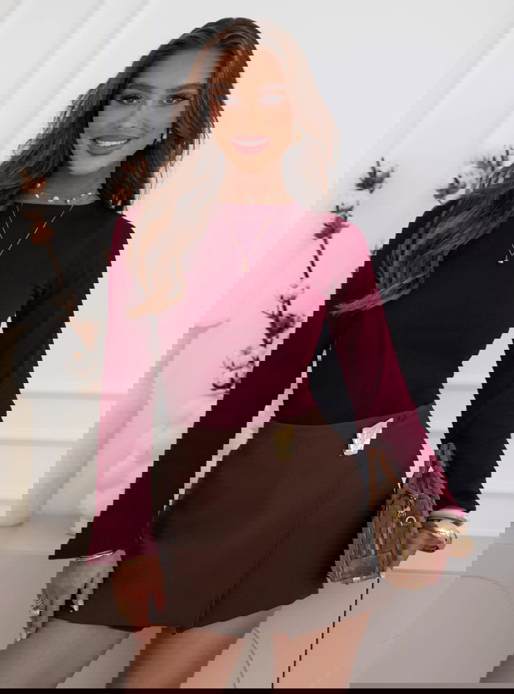Bordowa bluzka w prążek z rozszerzanym rękawem Becka to kwintesencja kobiecego stylu. Jej elegancki kolor, miękka faktura i modny krój sprawiają, że przyciąga spojrzenia. Rozszerzane rękawy nadają całości lekkości i charakteru. To idealny model dla kobiet, które lubią łączyć wygodę z elegancją. Sprawdzi się zarówno w codziennych stylizacjach, jak i na specjalne okazje. Świetnie komponuje się z biżuterią i dodatkami w złotym odcieniu. To ponadczasowy element garderoby, który doda klasy każdemu outfitowi.