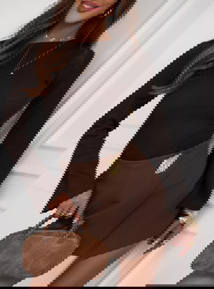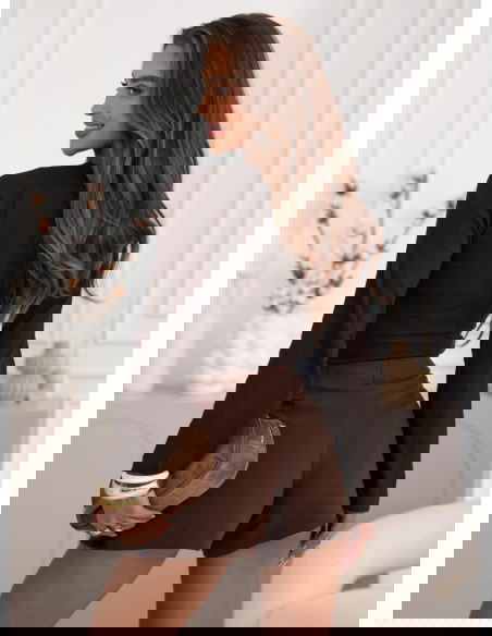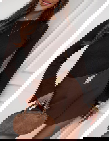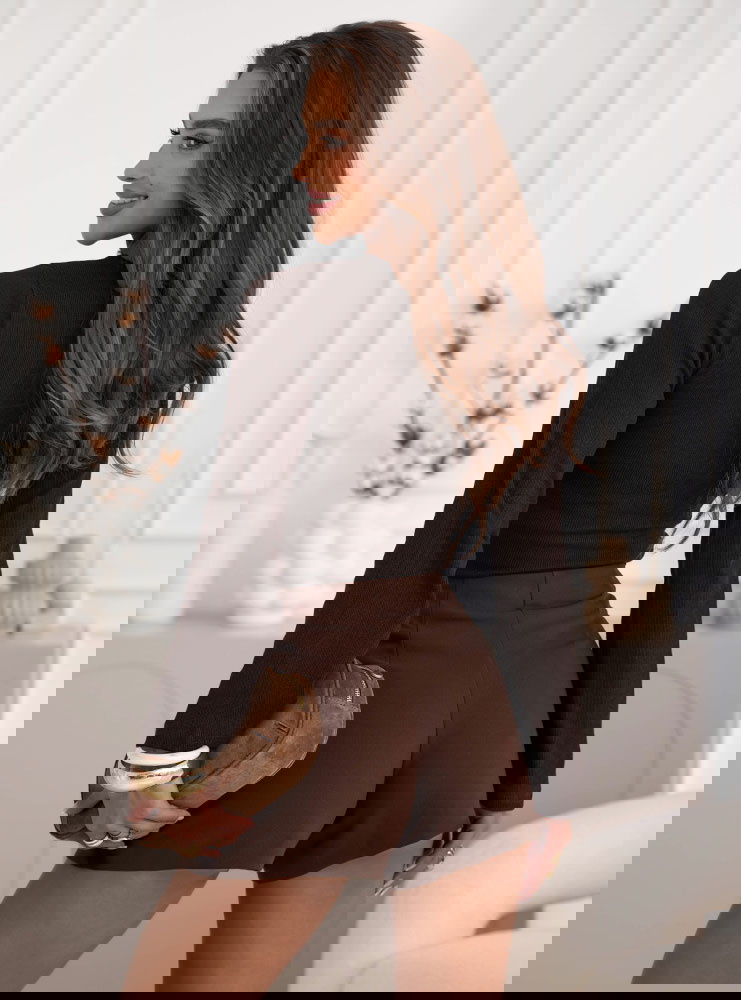 Czekoladowa bluzka w prążek z rozszerzanym rękawem Becka to połączenie elegancji, klasy i przytulnego stylu. Jej ciepły, głęboki odcień brązu doskonale wpisuje się w jesienno-zimowe trendy, podkreślając urodę i dodając stylizacjom wyrafinowania. Dopasowany fason pięknie modeluje sylwetkę, a elastyczna, prążkowana tkanina zapewnia komfort i swobodę ruchów. Rozszerzane rękawy nadają całości lekkości i subtelnego uroku. Bluzka zachwyca swoją prostotą i ponadczasowym krojem, dzięki czemu jest doskonałą bazą do wielu stylizacji. Świetnie prezentuje się zarówno z elegancką spódnicą, jak i z dopasowanymi spodniami lub jeansami. To model, który łączy kobiecość z nutą nowoczesności. Materiał jest miękki, przyjemny w dotyku i niezwykle wygodny. Czekoladowy kolor nadaje stylizacji ciepła i harmonii. To idealny wybór dla kobiet, które cenią klasyczny styl z odrobiną charakteru.