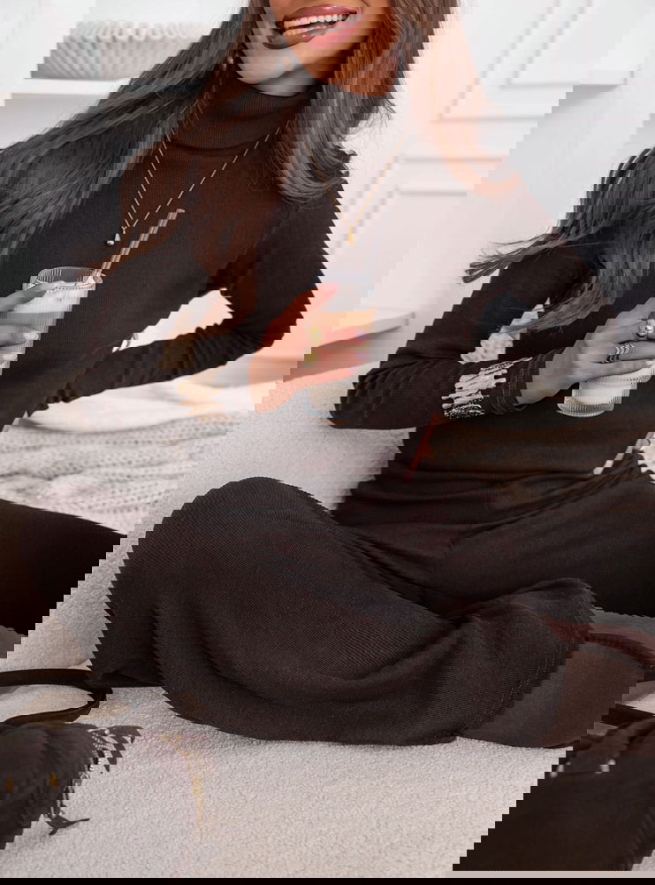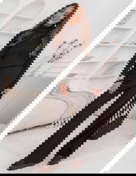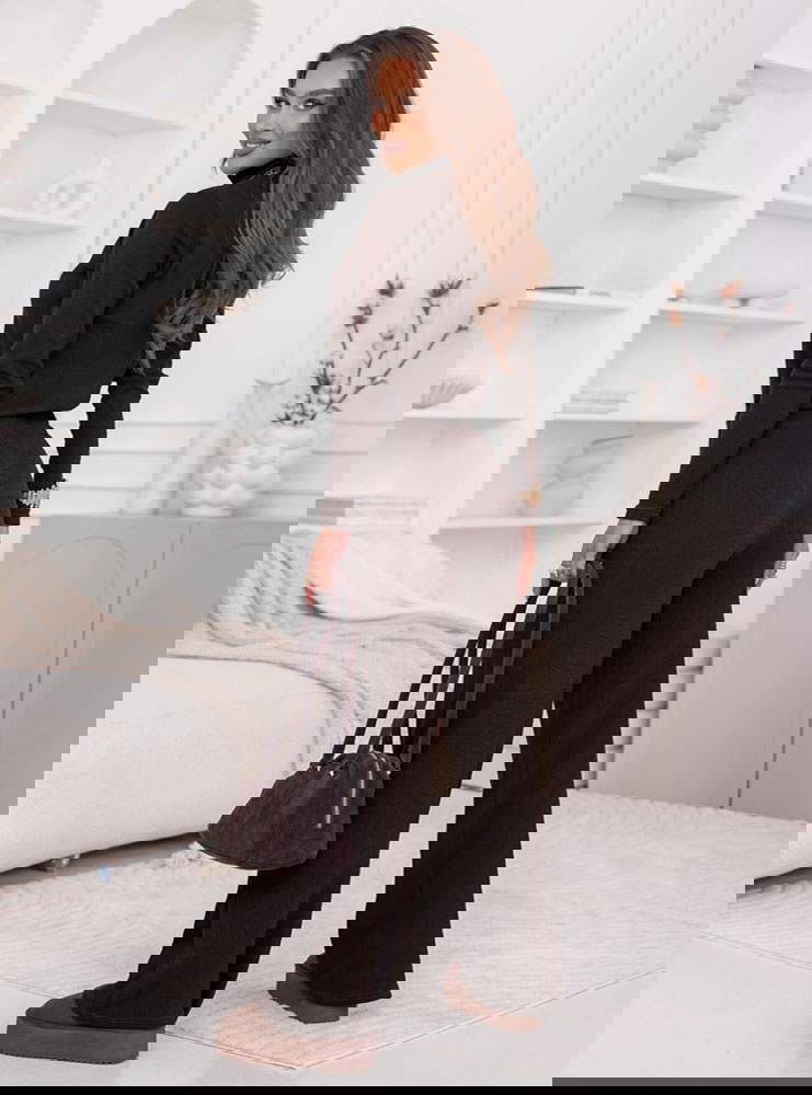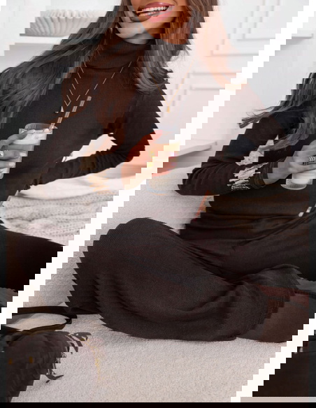 Czekoladowy komplet bluzka z golfem i szerokie spodnie Kimbree to połączenie klasy i wygody, które sprawdzi się w każdej sytuacji. Jego miękka dzianina i dopracowany krój gwarantują pełen komfort noszenia. Ciepły kolor pięknie komponuje się z jesienno-zimową paletą barw. Bluzka z golfem otula szyję, a szerokie spodnie dodają całości eleganckiego luzu. To idealny zestaw dla kobiet ceniących minimalizm i ponadczasową estetykę. Komplet można nosić razem lub osobno – zawsze wygląda doskonale. Stylowy, kobiecy i niezwykle wygodny – to propozycja, w której poczujesz się wyjątkowo każdego dnia.