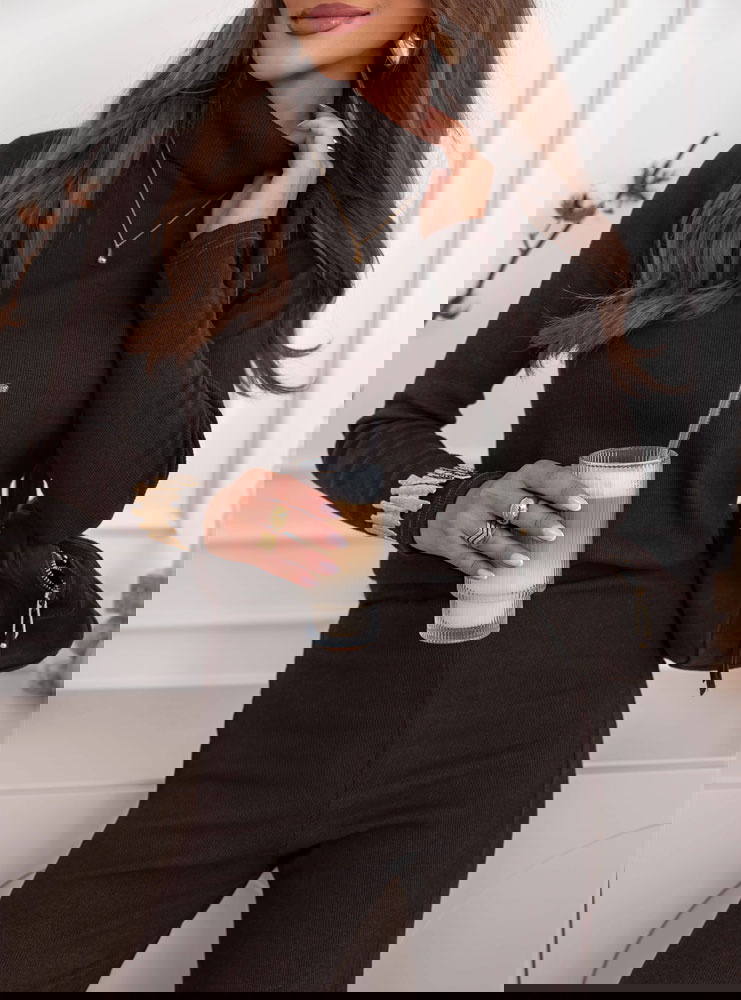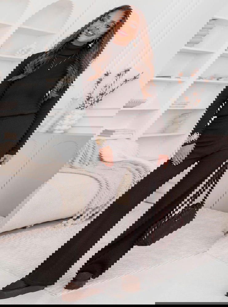 Czekoladowy komplet bluzka z golfem i szerokie spodnie Kimbree to esencja wygodnej elegancji, która zachwyca prostotą i klasą. Jego głęboki, ciepły odcień brązu dodaje stylizacji wyjątkowego charakteru i sprawia, że prezentuje się niezwykle szykownie. Dopasowana bluzka z golfem pięknie podkreśla sylwetkę, a szerokie spodnie nadają całości lekkości i swobodnego, nowoczesnego stylu. To idealne połączenie komfortu i elegancji – komplet wygląda doskonale zarówno w codziennych, jak i bardziej wyjściowych zestawieniach. Miękki, przyjemny w dotyku materiał otula ciało i zapewnia wygodę przez cały dzień. Prosty krój w połączeniu z modnym kolorem tworzy stylowy look, który nigdy nie wychodzi z mody. Komplet można nosić razem lub osobno, tworząc wiele różnych stylizacji. Świetnie wygląda z botkami, mokasynami czy sneakersami. Czekoladowy kolor dodaje ciepła i pasuje do biżuterii w odcieniach złota i beżu. To must-have dla kobiet, które cenią elegancki minimalizm i wygodę w jednym.