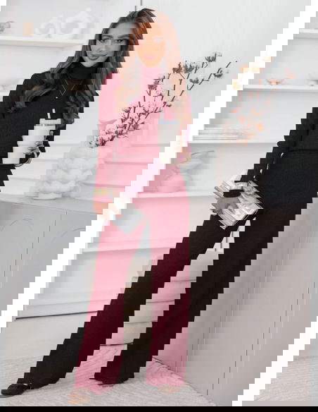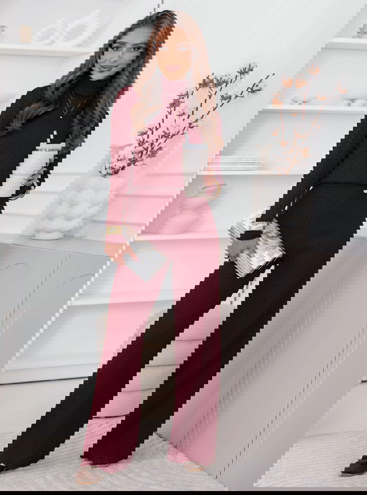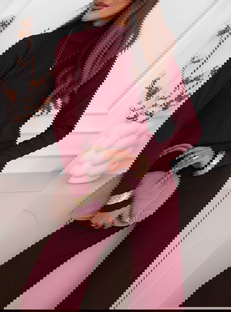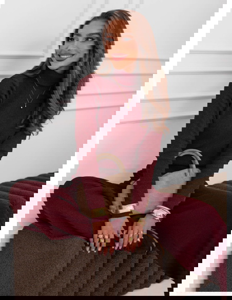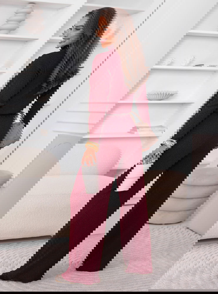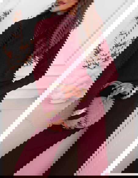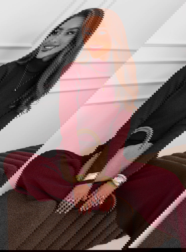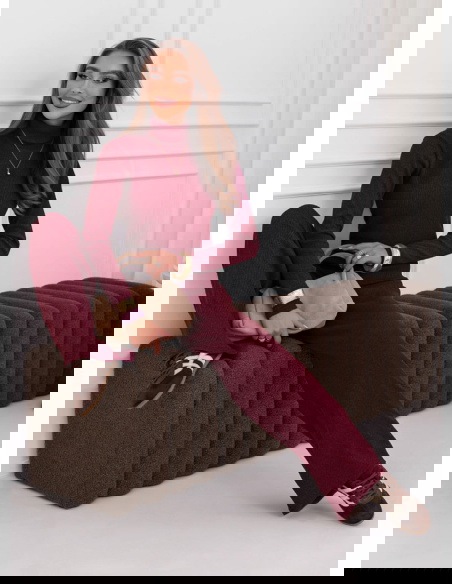 Bordowy komplet bluzka z golfem i szerokie spodnie Kimbree to połączenie stylu, komfortu i klasy. Jego głęboki kolor i dopasowany krój podkreślają kobiecą elegancję. Miękka dzianina gwarantuje wygodę przez cały dzień, a szerokie spodnie dodają całości lekkości i swobody. To idealna propozycja na chłodniejsze dni, która zawsze wygląda modnie. Komplet świetnie komponuje się z płaszczami, kurtkami i eleganckimi dodatkami. Niezależnie od okazji – zawsze prezentuje się doskonale. Stylowy, wygodny i ponadczasowy – to must-have w każdej kobiecej garderobie.