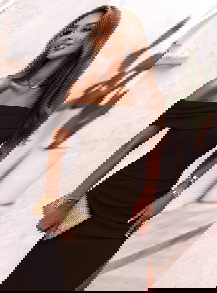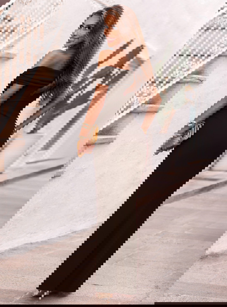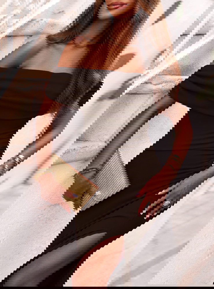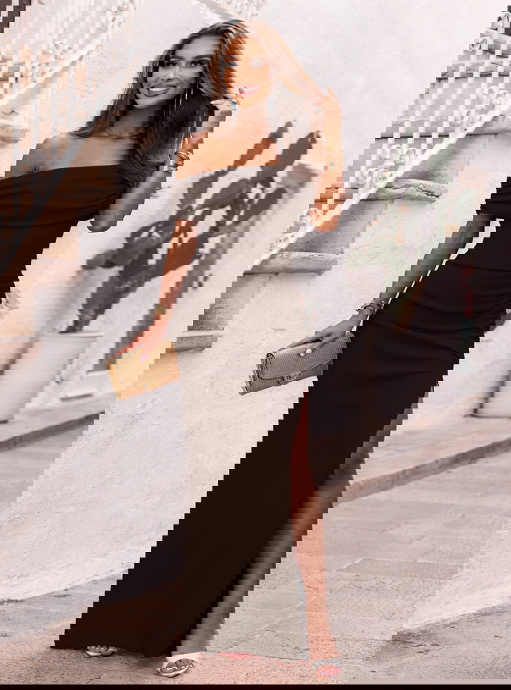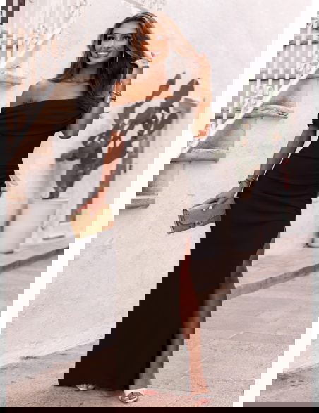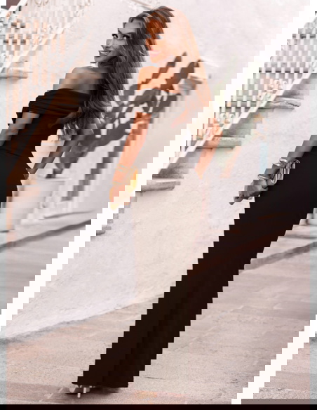 Czekoladowa długa dopasowana sukienka z rozcięciem Ermione to kwintesencja kobiecego szyku i elegancji. To model, który zachwyca swoją prostotą, a jednocześnie przyciąga spojrzenia wyjątkowym krojem. Głęboki odcień czekolady sprawia, że całość prezentuje się niezwykle szlachetnie i z klasą. To sukienka, która doskonale podkreśla sylwetkę, akcentując jej naturalne atuty. Rozcięcie po boku dodaje jej lekkości i nuty zmysłowości. Góra z odkrytymi ramionami wprowadza subtelny, romantyczny charakter, który idealnie współgra z eleganckim fasonem. To propozycja, która potrafi oczarować – zarówno w blasku wieczornego światła, jak i podczas wyjątkowych okazji. Jej ponadczasowy krój sprawia, że nigdy nie wyjdzie z mody. To kreacja, w której każda kobieta poczuje się wyjątkowo i pewnie. Zdecydowanie jedna z tych sukienek, które robią wrażenie już od pierwszego spojrzenia.