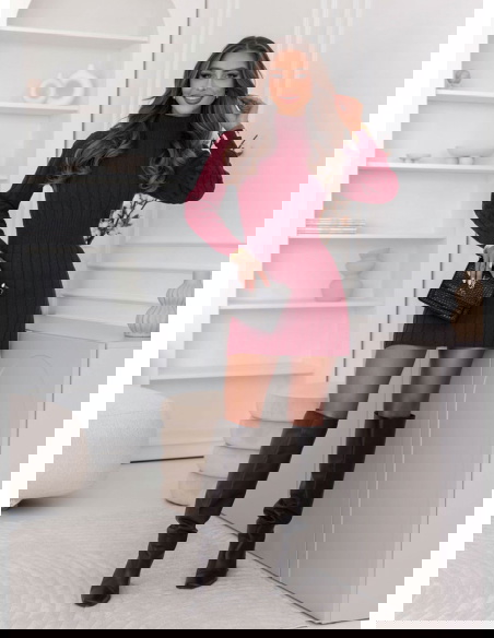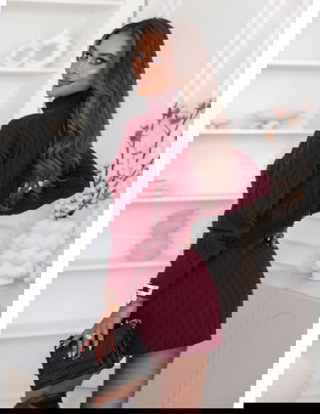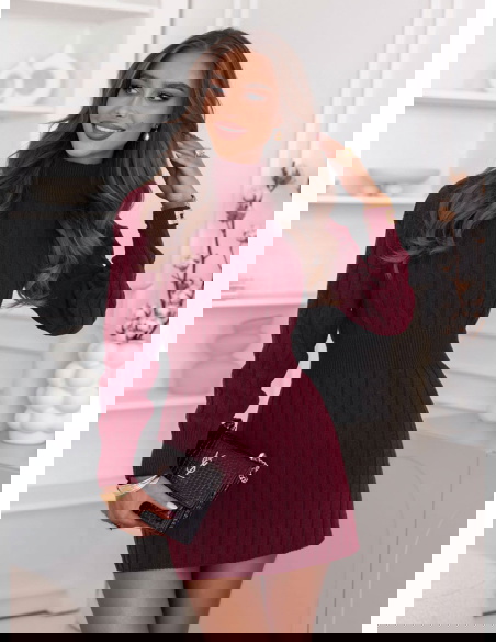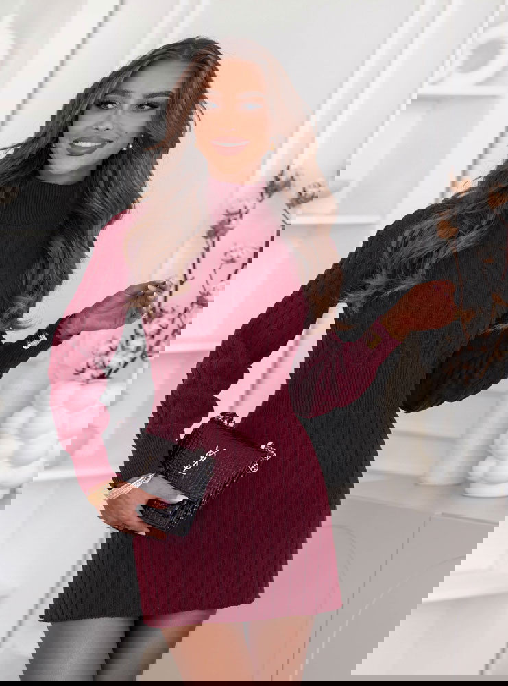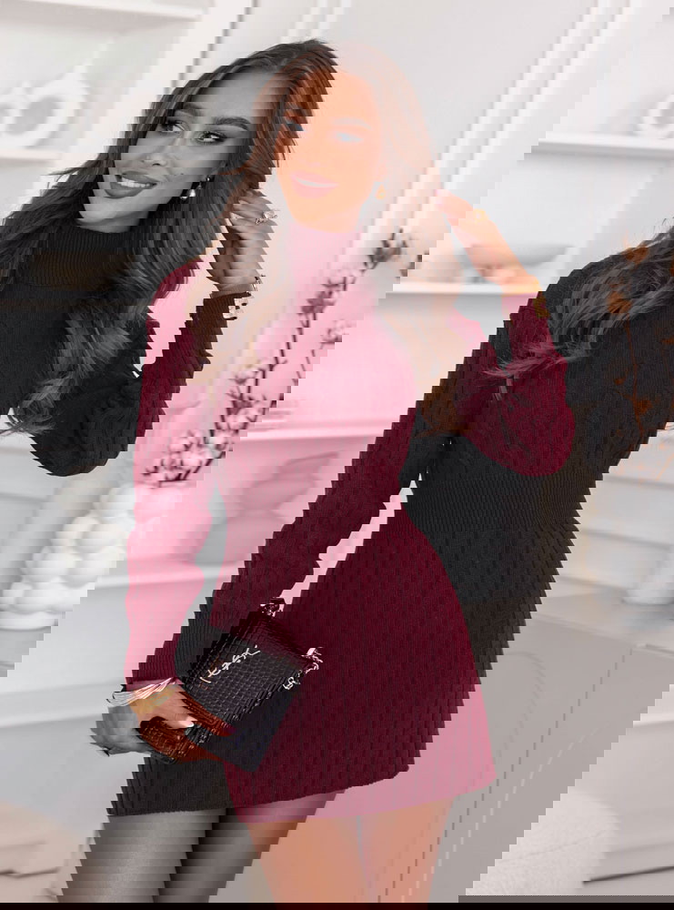 Bordowa sukienka swetrowa z warkoczowymi splotami Athiyah to idealna propozycja dla kobiet, które cenią elegancję połączoną z wygodą. Głęboki, winny odcień bordowy nadaje stylizacji klasy i wyjątkowego charakteru. Wykonana z miękkiej, elastycznej dzianiny, doskonale dopasowuje się do sylwetki, podkreślając jej kształty. Warkoczowe sploty w pionowym układzie optycznie wysmuklają figurę i dodają całości przytulnego uroku. Wysoki golf chroni przed chłodem, jednocześnie nadając sukience elegancki wygląd. Długość mini subtelnie eksponuje nogi, tworząc kobiecy, zmysłowy efekt. Sukienka sprawdzi się zarówno na co dzień, jak i na wyjątkowe okazje — wystarczy dobrać odpowiednie dodatki. Doskonale prezentuje się w zestawieniu z kozakami, botkami lub długim płaszczem. Bordowy kolor w połączeniu z klasycznym fasonem sprawia, że to model ponadczasowy i niezwykle stylowy. Ciepła, miękka i kobieca – stanie się Twoim ulubionym wyborem na chłodniejsze dni.