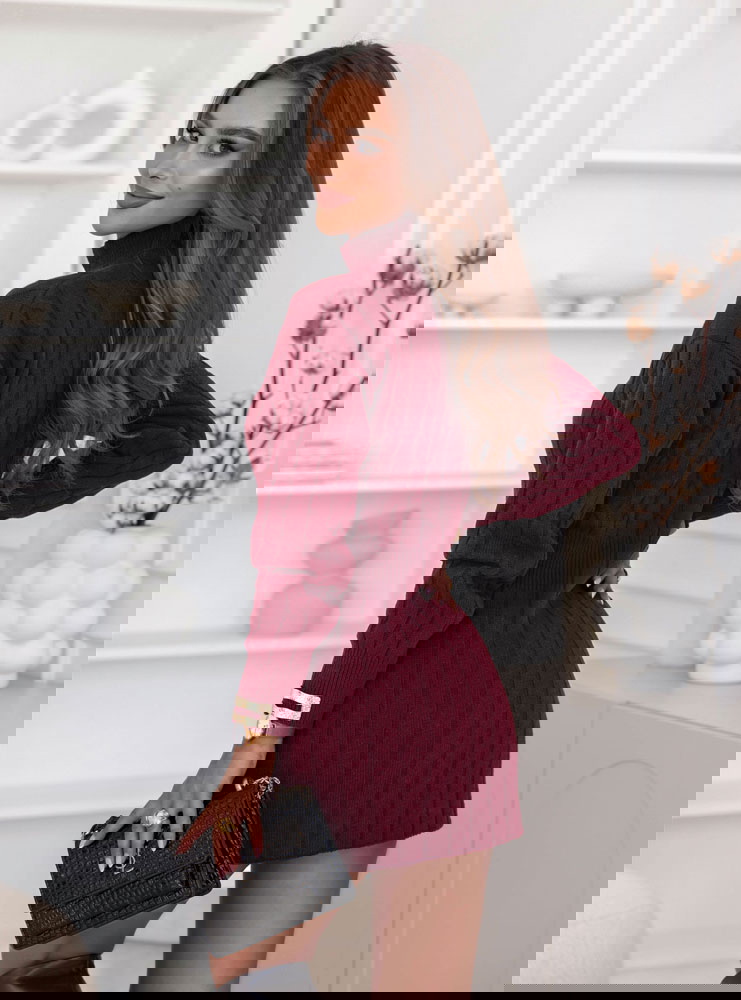 Bordowa sukienka swetrowa z warkoczowymi splotami Athiyah to klasyczna propozycja dla kobiet, które cenią elegancję w codziennym wydaniu. Jej dopasowany fason pięknie podkreśla figurę, a warkoczowy splot dodaje stylizacji charakteru. Ciepły materiał sprawia, że jest idealna na chłodne dni. Wysoki golf i długość mini tworzą modne, zbalansowane połączenie. Bordowy kolor nadaje sukience głębi i szyku. To model, który sprawdzi się zarówno w eleganckiej, jak i casualowej stylizacji. Stylowa, wygodna i kobieca – idealna na każdy dzień sezonu jesienno-zimowego.