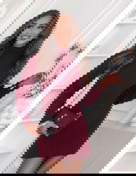 Bordowa sukienka swetrowa z warkoczowymi splotami Athiyah