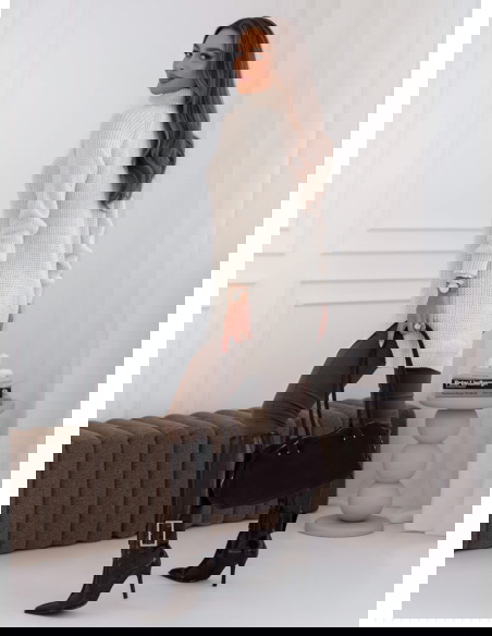 Sweter z golfem Ethylinna - ecru to klasyka, która nigdy nie wychodzi z mody. Wykonany z miękkiej, przyjemnej w dotyku dzianiny, zapewnia ciepło i komfort w chłodniejsze dni. Jasny, kremowy odcień ecru dodaje stylizacji elegancji i subtelności. Wysoki golf otula szyję, tworząc modny, a zarazem praktyczny akcent. Luźniejszy fason zapewnia swobodę ruchów, a jednocześnie prezentuje się niezwykle kobieco. Rękawy zakończone ściągaczami podkreślają casualowy, swobodny charakter swetra. To model, który doskonale komponuje się zarówno ze spodniami, jak i legginsami. Można go również nosić jako krótką sukienkę w zestawieniu z kozakami. Jego minimalistyczny design sprawia, że stanowi świetną bazę do wielu jesienno-zimowych stylizacji. Sweter z golfem w odcieniu ecru to must-have dla kobiet ceniących klasykę, wygodę i ponadczasowy styl.