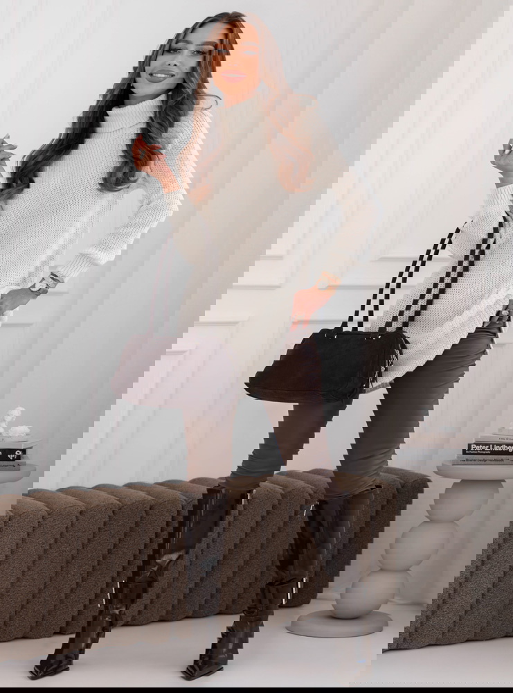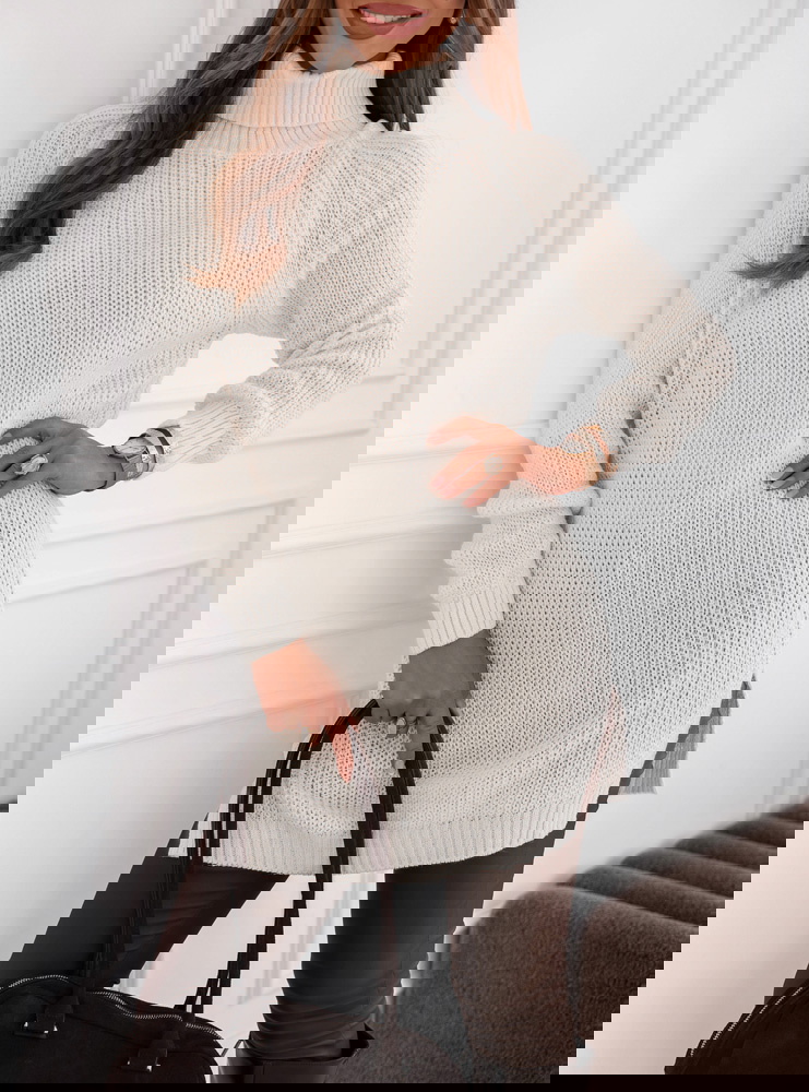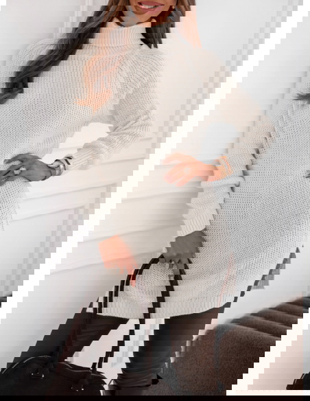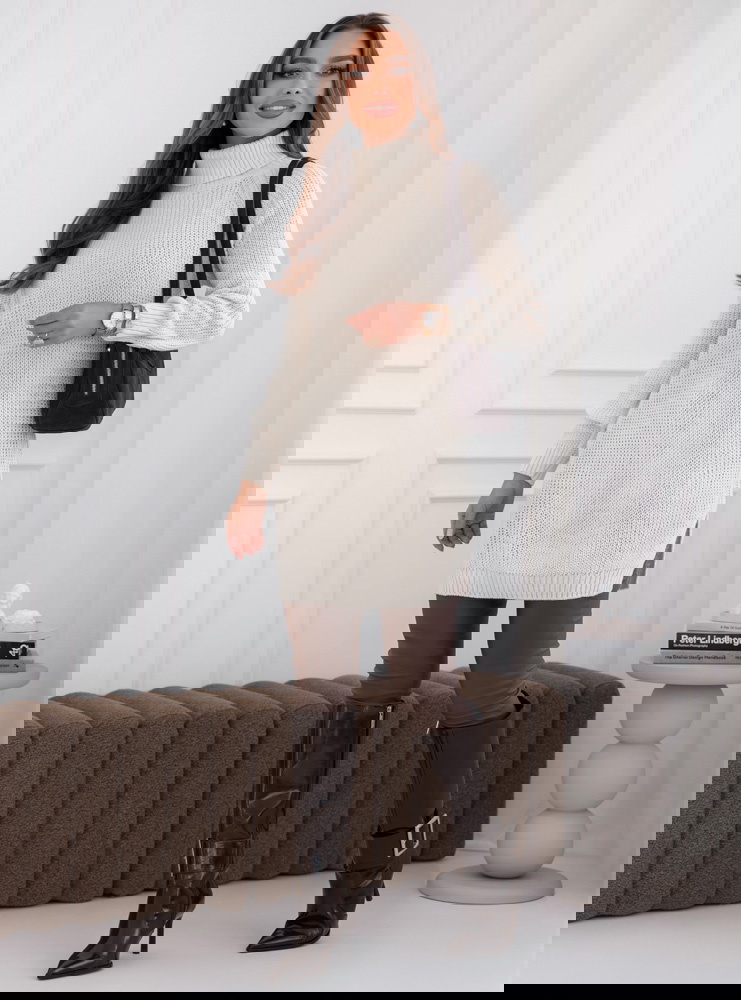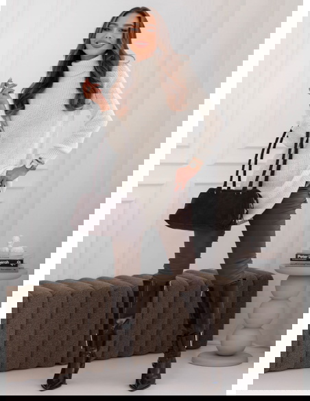 Sweter z golfem Ethylinna - ecru to kwintesencja wygody i elegancji w jednym. Jego ciepły odcień i miękka dzianina sprawiają, że jest idealny na chłodne dni. Luźny krój i wysoki golf gwarantują komfort oraz przytulny wygląd. Świetnie komponuje się z kozakami, legginsami lub dopasowanymi spodniami. Jasny kolor ecru dodaje lekkości i klasy każdej stylizacji. To model, który sprawdzi się zarówno w codziennym, jak i bardziej eleganckim wydaniu. Stylowy, uniwersalny i kobiecy – niezbędny element jesienno-zimowej garderoby.