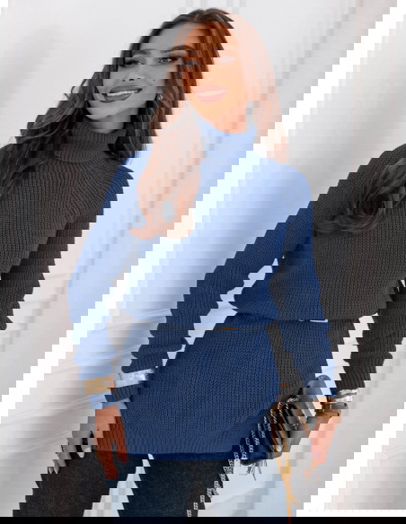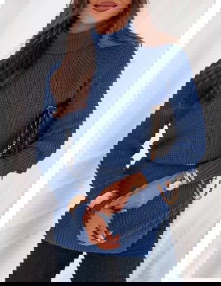 Granatowy sweter z golfem Ethylinna to klasyka w najlepszym wydaniu. Wykonany z miękkiej dzianiny, gwarantuje wygodę i ciepło. Luźny krój, rozcięcia po bokach i wysoki golf tworzą idealne połączenie stylu i komfortu. Granatowy kolor dodaje elegancji i pasuje do każdej stylizacji. Sweter można nosić samodzielnie lub z paskiem w talii. To model, który sprawdzi się w pracy, na co dzień i podczas weekendowych spotkań. Ciepły, wygodny i niezwykle stylowy – obowiązkowy element jesienno-zimowej garderoby.