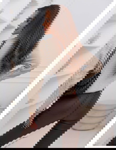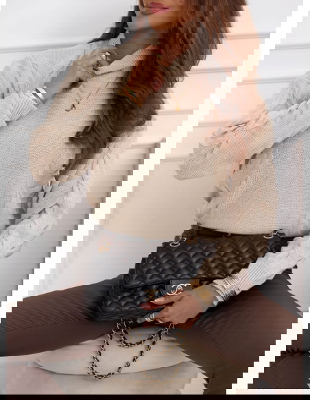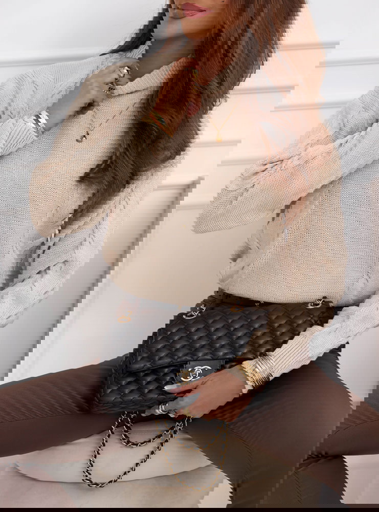 Beżowy sweter z półgolfem Chirine to uniwersalny element garderoby, który nigdy nie wychodzi z mody. Wysokiej jakości dzianina, przyjemna w dotyku i ciepła, sprawia, że noszenie go to czysta przyjemność. Półgolf dodaje elegancji i stanowi świetną alternatywę dla klasycznego golfa. Delikatne bufki przy rękawach dodają mu kobiecego uroku. Beżowy kolor podkreśla naturalność i świetnie komponuje się z innymi barwami. To model, który sprawdzi się w każdej sytuacji – od codziennych po bardziej eleganckie okazje. Stylowy, wygodny i ponadczasowy – obowiązkowy w każdej jesienno-zimowej kolekcji.