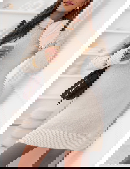 Swetrowa sukienka z półgolfem Louvenia - ecru -