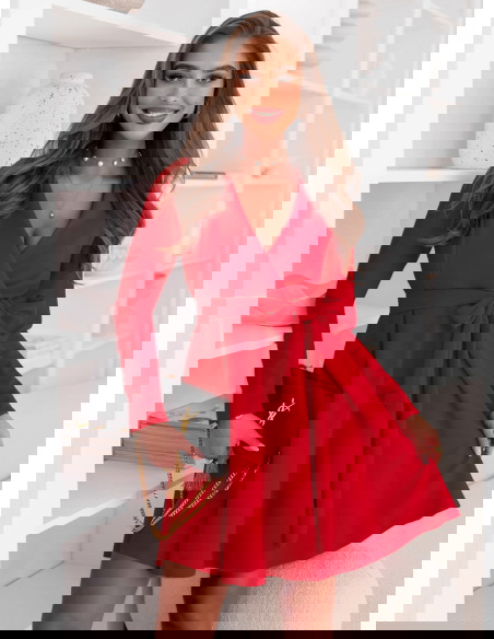 Malinowa sukienka z przekładanym dekoltem z paskiem Kaitlan