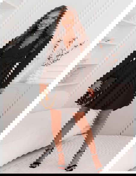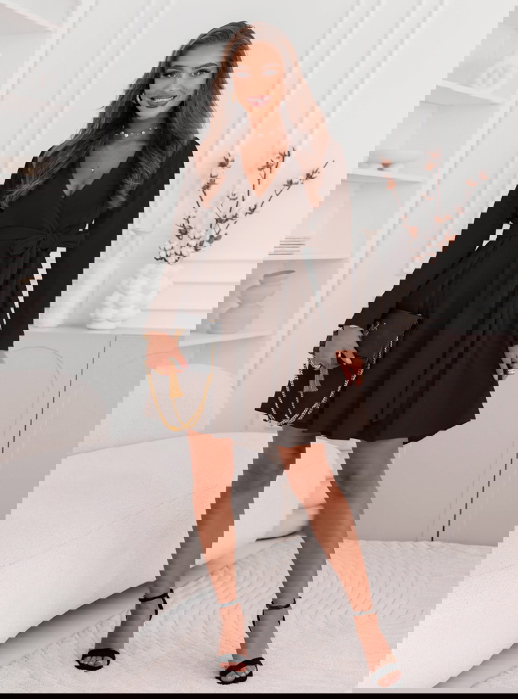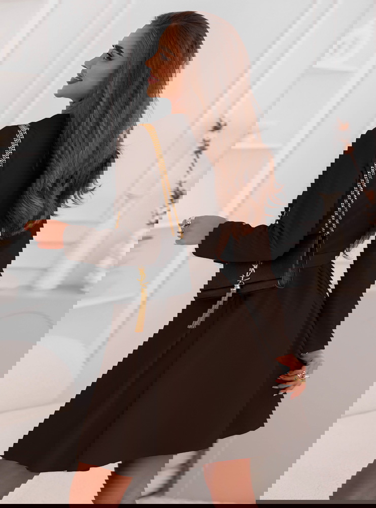 Czekoladowa sukienka z przekładanym dekoltem z paskiem Kaitlan to kwintesencja kobiecego szyku i ponadczasowej elegancji. Jej głęboki, ciepły odcień brązu pięknie komponuje się z każdym typem urody, dodając stylizacji wyjątkowego charakteru. Kopertowy dekolt w kształcie litery V subtelnie podkreśla biust i wysmukla szyję, nadając całości zmysłowego wdzięku. Pasek w talii pozwala dopasować sukienkę do sylwetki, akcentując jej kobiece proporcje. Rozkloszowany dół dodaje lekkości i swobody, tworząc efekt pełen delikatnego ruchu. Długie rękawy sprawiają, że model idealnie sprawdzi się w chłodniejsze dni. Wykonana z miękkiego, elastycznego materiału, zapewnia komfort noszenia i elegancki wygląd przez cały dzień. Czekoladowy kolor to doskonała alternatywa dla klasycznej czerni – równie elegancki, ale cieplejszy i bardziej wyrazisty. To sukienka, która idealnie łączy kobiecość z prostotą. Sprawdzi się w każdej sytuacji – od codziennych spotkań po wyjątkowe okazje.