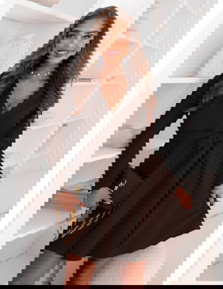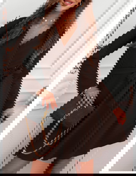 Czekoladowa sukienka z przekładanym dekoltem z paskiem Kaitlan