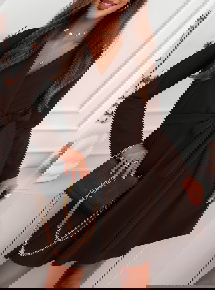 Czekoladowa sukienka z przekładanym dekoltem z paskiem Kaitlan to klasyka w nowoczesnym wydaniu. Jej ponadczasowy krój podkreśla atuty figury, a głęboki brąz dodaje elegancji i ciepła. Kopertowy dekolt, pasek w talii i rozkloszowany dół tworzą idealną harmonię. Sukienka jest wygodna, stylowa i niezwykle uniwersalna. Pasuje do biżuterii w złotych lub beżowych tonacjach i świetnie komponuje się z jesiennymi dodatkami. To propozycja dla kobiet, które lubią wyglądać z klasą bez rezygnacji z komfortu. Elegancka i kobieca – stanie się jednym z Twoich ulubionych elementów garderoby.