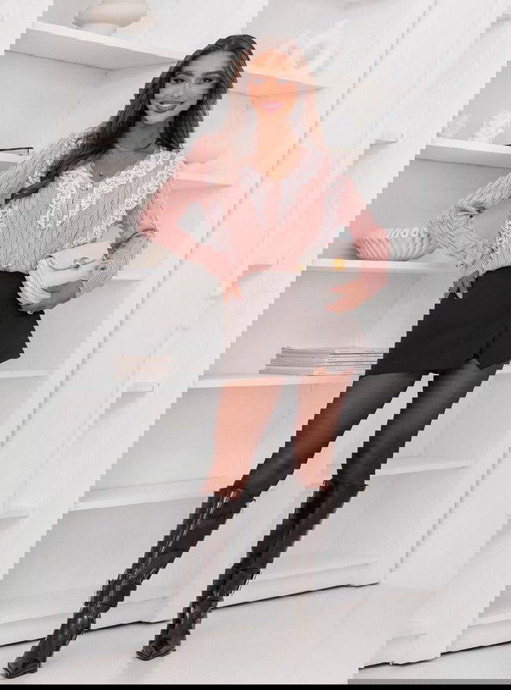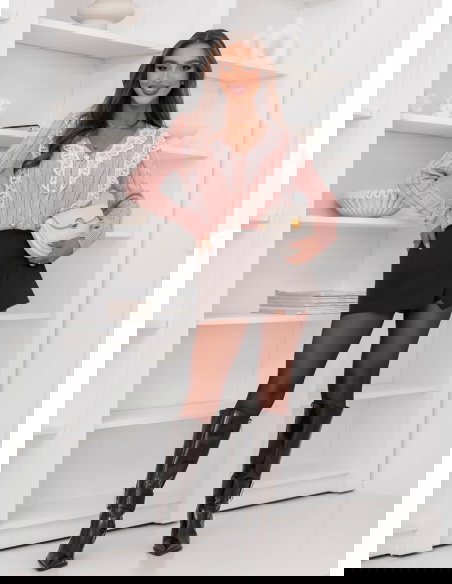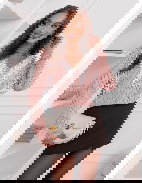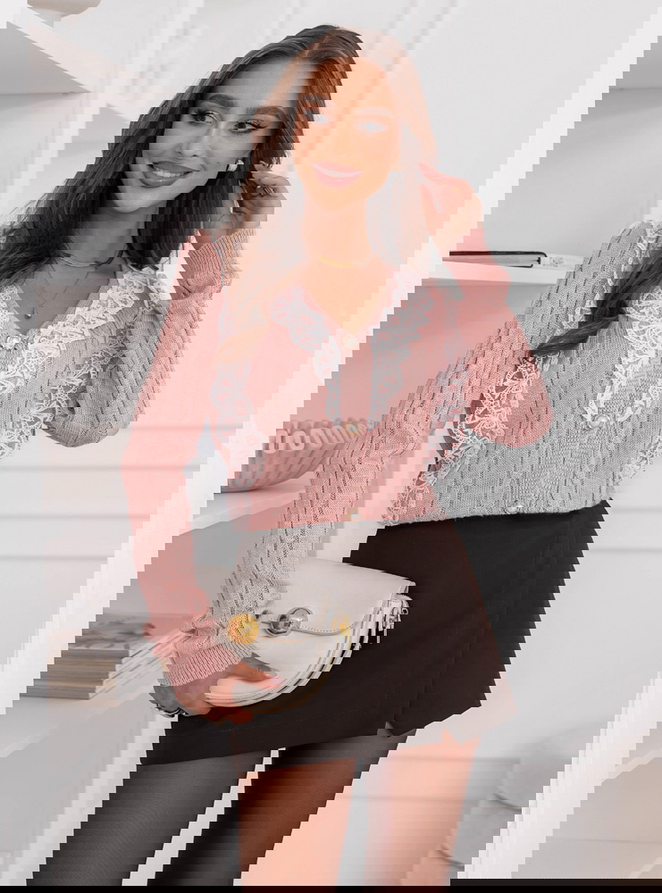 Pudrowy sweter z ozdobną koronką zapinany na guziki Chantilly doskonale sprawdzi się na co dzień, do pracy, a także podczas spotkań z przyjaciółmi. Możesz założyć go na spacer po mieście, kawę z koleżanką czy rodzinny obiad.