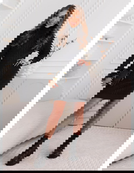 Czarna sweterkowa sukienka z golfem Theralu to klasyka w najpiękniejszym, jesiennym wydaniu. Ten model łączy w sobie ponadczasową elegancję z przytulnym stylem, który idealnie wpisuje się w chłodniejsze dni. Dopasowany krój subtelnie podkreśla sylwetkę, dodając jej kobiecego wdzięku. Golf nadaje całości stylowego charakteru, a jednocześnie wprowadza nutę przytulności i komfortu. To propozycja dla kobiet, które cenią prostotę, ale lubią, gdy każdy detal ma znaczenie. Ciepły, głęboki odcień czerni sprawia, że sukienka wygląda niezwykle szykownie i pasuje niemal do wszystkiego. Wystarczy kilka dodatków, by stworzyć z nią zarówno codzienny, jak i elegancki look. To idealny wybór na jesień – łączy wygodę swetra z kobiecym charakterem sukienki. Niezależnie od okazji, pozwoli Ci wyglądać stylowo i czuć się pewnie. To model, który stanie się Twoim ulubionym elementem sezonu.