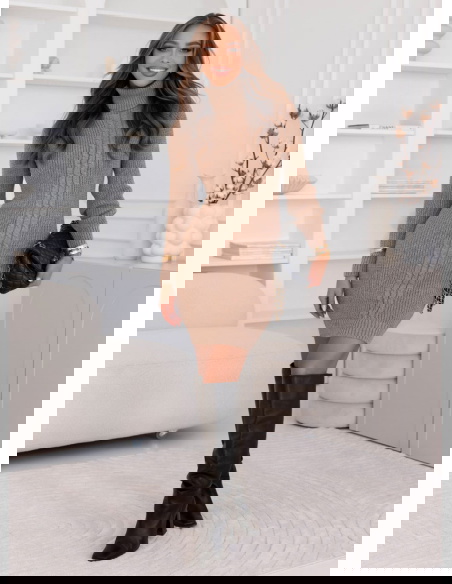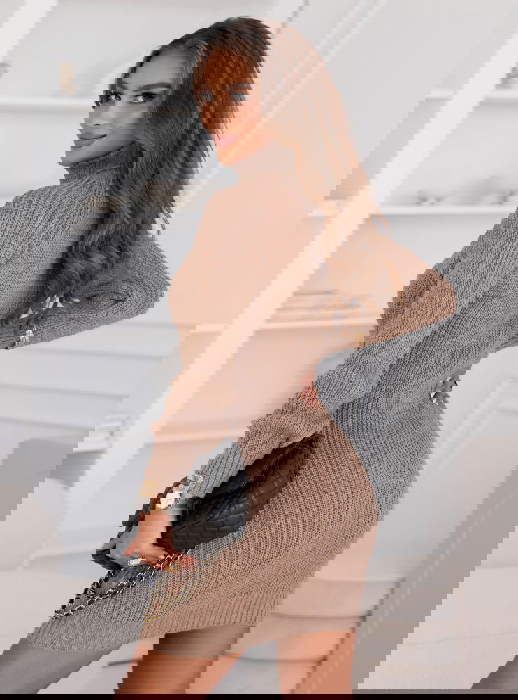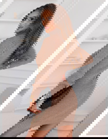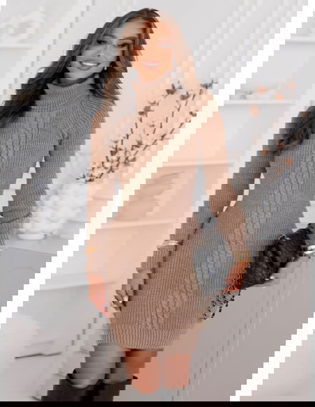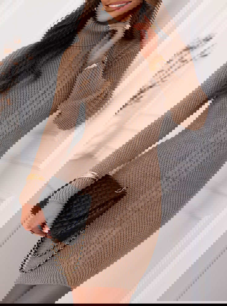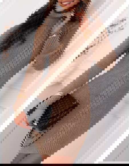 Sweterkowa sukienka z golfem Theralu - mocha mousse