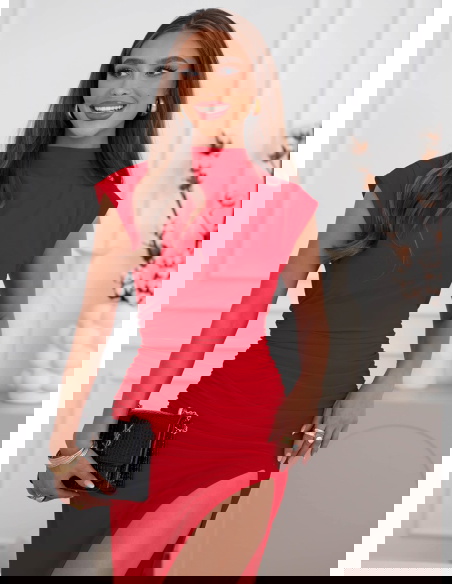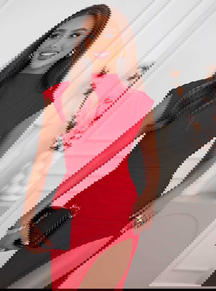 Malinowa dopasowana sukienka z marszczeniem w talii Chaleece to kwintesencja kobiecej elegancji i pewności siebie. Jej intensywny kolor przyciąga spojrzenia i dodaje energii każdej stylizacji. To model, który łączy w sobie klasykę z nutą nowoczesnego szyku. Dopasowany krój pięknie podkreśla figurę, akcentując kobiece kształty w subtelny, ale zdecydowany sposób. Marszczenia w talii nie tylko optycznie wysmuklają sylwetkę, ale też nadają całości wyjątkowego charakteru. Długość midi dodaje jej elegancji i sprawia, że prezentuje się niezwykle stylowo. To sukienka, w której każda kobieta poczuje się wyjątkowo — zarówno podczas wyjątkowych okazji, jak i eleganckich wieczorów. Zmysłowe rozcięcie z boku wprowadza lekkość i odrobinę odwagi. Idealnie sprawdzi się w sezonie jesiennym, kiedy chcesz dodać swojej stylizacji wyrazistości. To połączenie kobiecości, klasy i elegancji w najlepszym wydaniu.