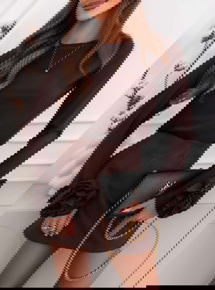 Czekoladowa bluzka z ozdobnymi różami Ilesha to połączenie subtelnej elegancji i wyjątkowego stylu. Już na pierwszy rzut oka zachwyca kobiecym urokiem, który podkreśla jej głęboki, ciepły odcień. To model, który doskonale wpisuje się w jesienne trendy, dodając stylizacji klasy i szyku. Delikatny materiał pięknie układa się na sylwetce, tworząc efekt lekkości i wdzięku. Ozdobne róże na rękawach nadają jej niepowtarzalnego charakteru i sprawiają, że każda stylizacja zyskuje wyjątkowy akcent. To bluzka, która łączy prostotę kroju z wyraźnym detalem, tworząc idealną harmonię między klasyką a nowoczesnością. Jej kolor i fason podkreślają kobiecą elegancję w najczystszej formie. Idealnie sprawdzi się w sezonie jesiennym, kiedy królują głębokie, ciepłe barwy. To model, który przyciąga spojrzenia i sprawia, że każda kobieta czuje się wyjątkowo. Stylowa, szykowna i ponadczasowa – taka właśnie jest ta bluzka.