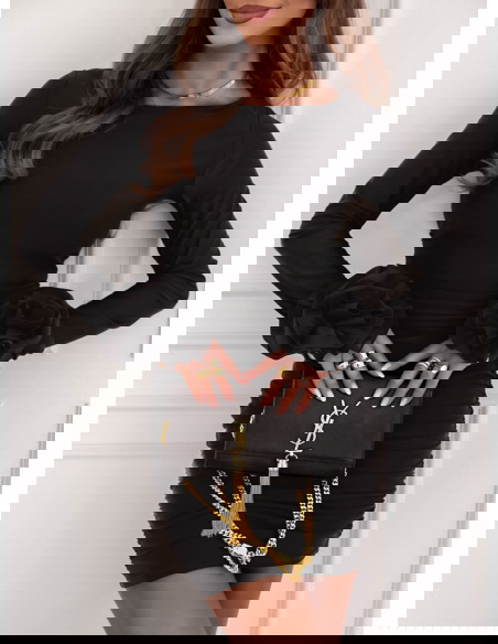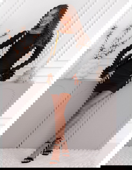 Czarna dopasowana sukienka z ozdobnymi różami na rękawach Monalaine to model, który łączy w sobie elegancję i wyjątkowy charakter. To propozycja dla kobiet, które kochają klasykę, ale nie boją się wyróżniać subtelnym detalem. Dopasowany krój pięknie podkreśla sylwetkę, a marszczenia po bokach dodają jej lekkości i zmysłowego wyglądu. Ozdobne róże na rękawach wprowadzają romantyczny akcent i tworzą efektowną kompozycję, która przyciąga spojrzenia. To idealna sukienka na jesień – utrzymana w klasycznej czerni, prezentuje się stylowo i ponadczasowo. Jej minimalistyczna forma przełamana wyjątkowym detalem sprawia, że nie potrzebuje wielu dodatków, by zachwycać. Każdy element tej sukienki został zaprojektowany z myślą o kobiecości i elegancji. Doskonale sprawdzi się zarówno na specjalne okazje, jak i na wieczorne wyjścia. To model, który pozwoli Ci poczuć się wyjątkowo w każdej sytuacji.