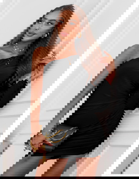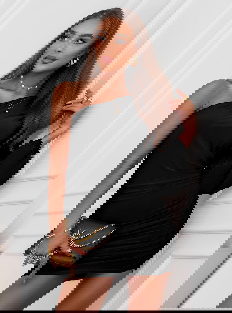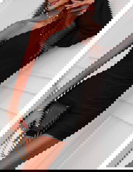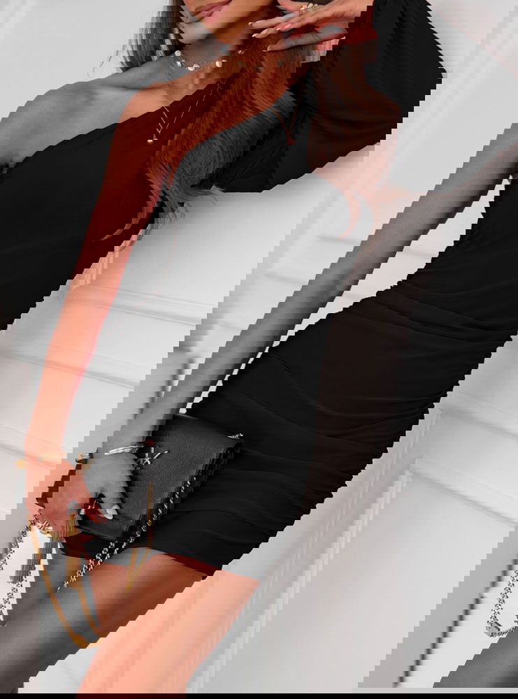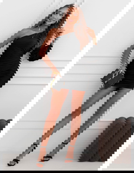 Czarna sukienka na jedno ramie Idryssa to kwintesencja nowoczesnej elegancji i kobiecego stylu. To model, który od razu przyciąga wzrok swoim wyjątkowym krojem i subtelnym wykończeniem. Jedno odkryte ramię dodaje jej zmysłowości, a długi, bufkowany rękaw po drugiej stronie nadaje stylizacji balansu i klasy. Dopasowany fason pięknie podkreśla figurę, eksponując talię i biodra w niezwykle szykowny sposób. Marszczenia na materiale nadają całości lekkości i delikatnie modelują sylwetkę. To propozycja stworzona dla kobiet, które lubią błyszczeć, ale z wyczuciem i elegancją. Czerń w tym wydaniu prezentuje się wyjątkowo – uniwersalnie, ponadczasowo i niezwykle efektownie. To sukienka, w której poczujesz się pewnie i stylowo w każdej sytuacji. Idealna na sezon jesiennych wyjść, gdy chcesz połączyć elegancję z nowoczesnym charakterem. Z takim modelem w szafie – każda okazja stanie się wyjątkowa.