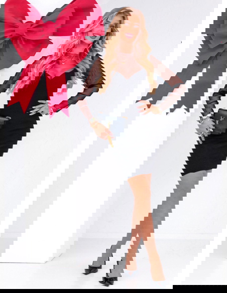 Czarna prążkowana sukienka z tiulowymi rękawami Jerolyn to idealna propozycja dla kobiet, które pragną połączyć klasyczną elegancję z nowoczesnym stylem.