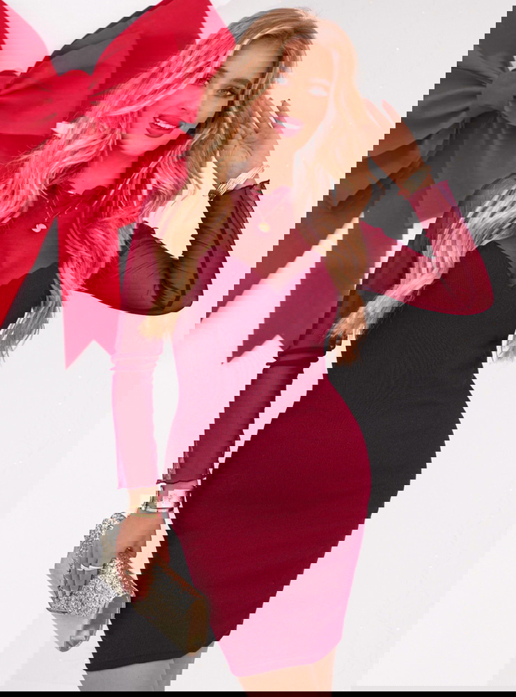 Bordowa prążkowana sukienka z tiulowymi rękawami Jerolyn to wyjątkowa propozycja dla kobiet, które cenią sobie elegancję z nutą zmysłowości. Jej intensywny bordowy kolor przyciąga uwagę, dodając stylizacji wyrazistości i klasy. Dopasowany krój pięknie podkreśla kobiecą sylwetkę, a prążkowany materiał nadaje całości struktury i dynamiki. Tiulowe rękawy wprowadzają delikatny, romantyczny akcent, tworząc subtelny kontrast z dopasowaną górą. Ta sukienka to idealny wybór na specjalne okazje, kiedy chcesz wyglądać elegancko, ale jednocześnie intrygująco. Przezroczyste rękawy dodają sukience lekkości i zmysłowości, dzięki czemu całość prezentuje się niezwykle stylowo. Sukienka jest zaprojektowana tak, aby eksponować atuty sylwetki, zachowując przy tym pełną elegancję. To kreacja, która idealnie sprawdzi się na wieczorne wyjścia, randki czy eleganckie kolacje.