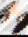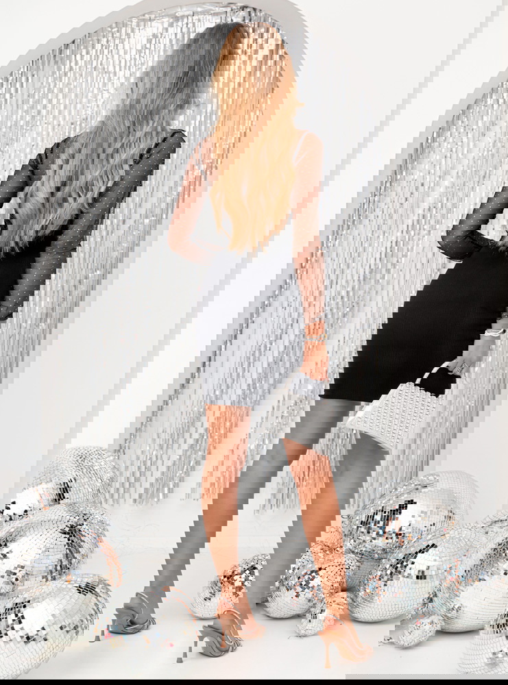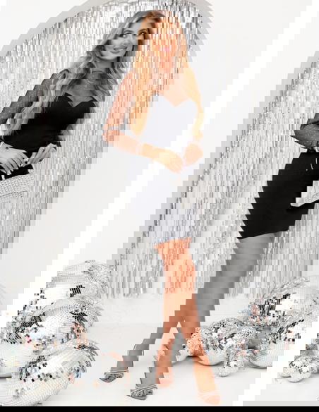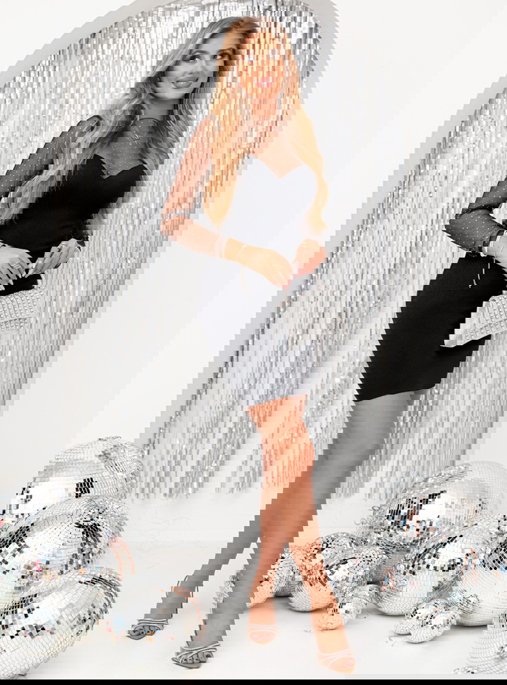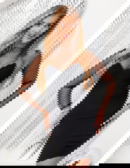 Czarna prążkowana sukienka z tiulowymi rękawami Caitlin to propozycja, która łączy elegancję z nutą zmysłowości, doskonale sprawdzając się w wielu stylizacjach. Jej klasyczny czarny kolor dodaje szyku i uniwersalności, co sprawia, że można ją nosić na różne okazje. Dopasowany krój pięknie podkreśla sylwetkę, nadając jej kobiecego charakteru. Tiulowe rękawy to subtelny, a zarazem wyrazisty akcent, który przyciąga spojrzenia i dodaje kreacji delikatności. Prążkowana struktura materiału wzbogaca sukienkę o ciekawą teksturę, czyniąc ją bardziej wyrazistą. Dekolt w kształcie serca subtelnie eksponuje biust, jednocześnie zachowując elegancki charakter stylizacji. Transparentne tiulowe rękawy zdobione drobnymi elementami nadają sukience lekkości i wyjątkowości. Długość mini podkreśla nogi, dodając całej stylizacji odrobinę zmysłowości. Ta sukienka świetnie łączy w sobie klasykę z nowoczesnością, dzięki czemu będzie pasować zarówno na formalne wydarzenia, jak i na mniej zobowiązujące spotkania. Jej ponadczasowy design pozwala na tworzenie różnorodnych stylizacji, od minimalistycznych po bardziej efektowne, w zależności od dobranych dodatków.